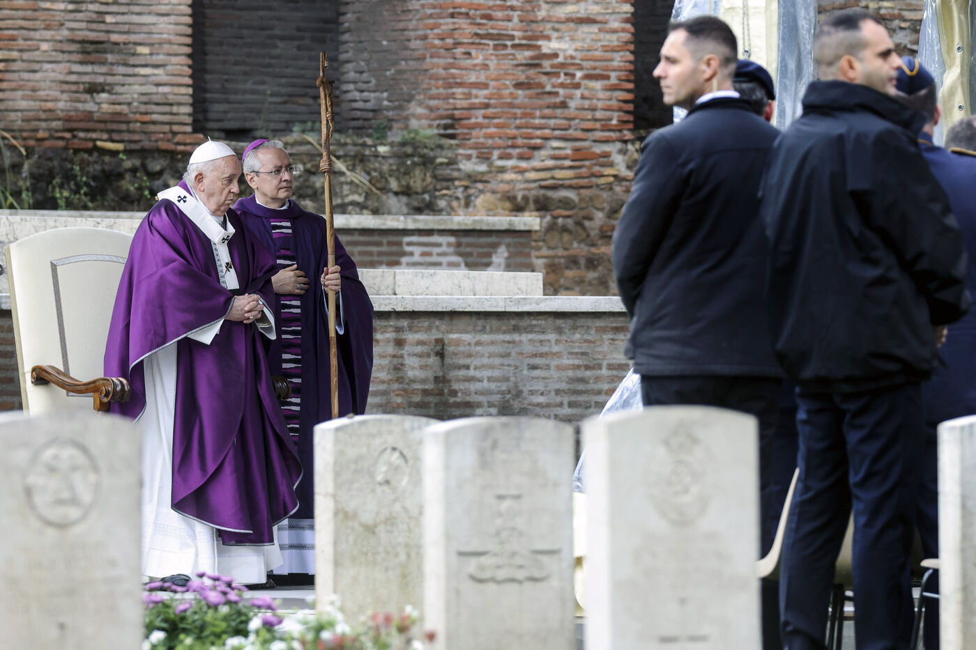 Pope Francis says mass for dead people at Rome's Commonwealth cemetery