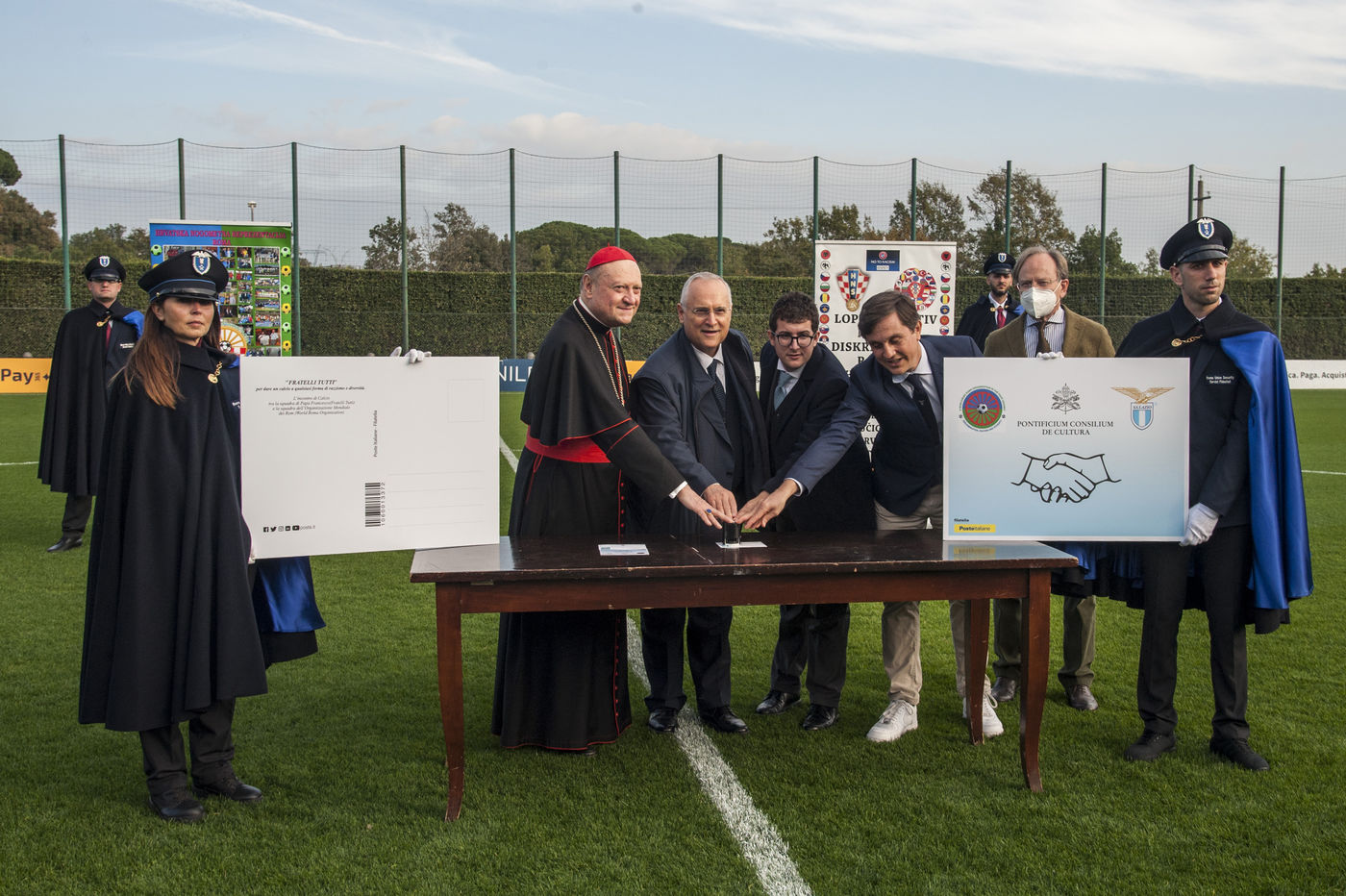 Italy, Rome, 21/11/21. Friendly football match "Fratelli tutti", between the World Rom Organization and the "Team of the Pope - Fratelli tutti", at the Training Center of the Sporting Club Lazio, in Formello (ROME).