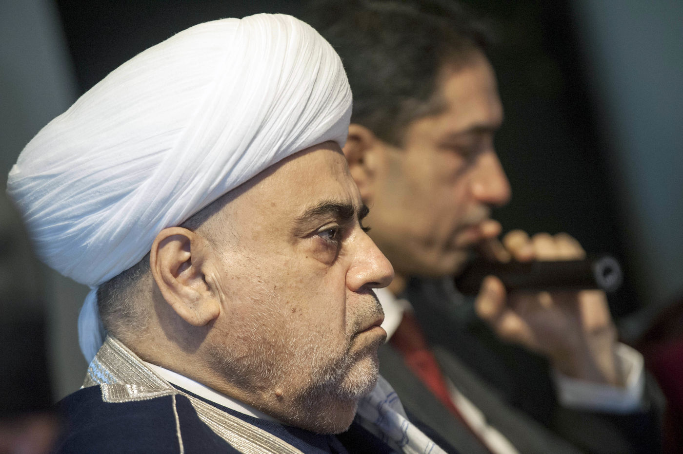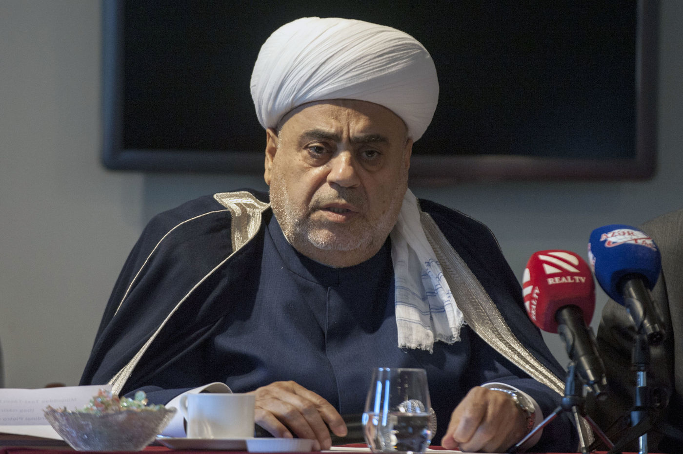 Italy, Rome, Vatican, 22/01/17. Sheikh ul-Islam Allahchukur Pashazadé, Head of the Caucasus Muslim Directorate and Rahman Sahib oglu Mustafayev, Ambassador of Azerbaijan to the Holy See during press conference on the occasion of the official visit to the Holy See of the inter-religious delegation of the Republic of Azerbaijan, at the Hotel Agrippina.