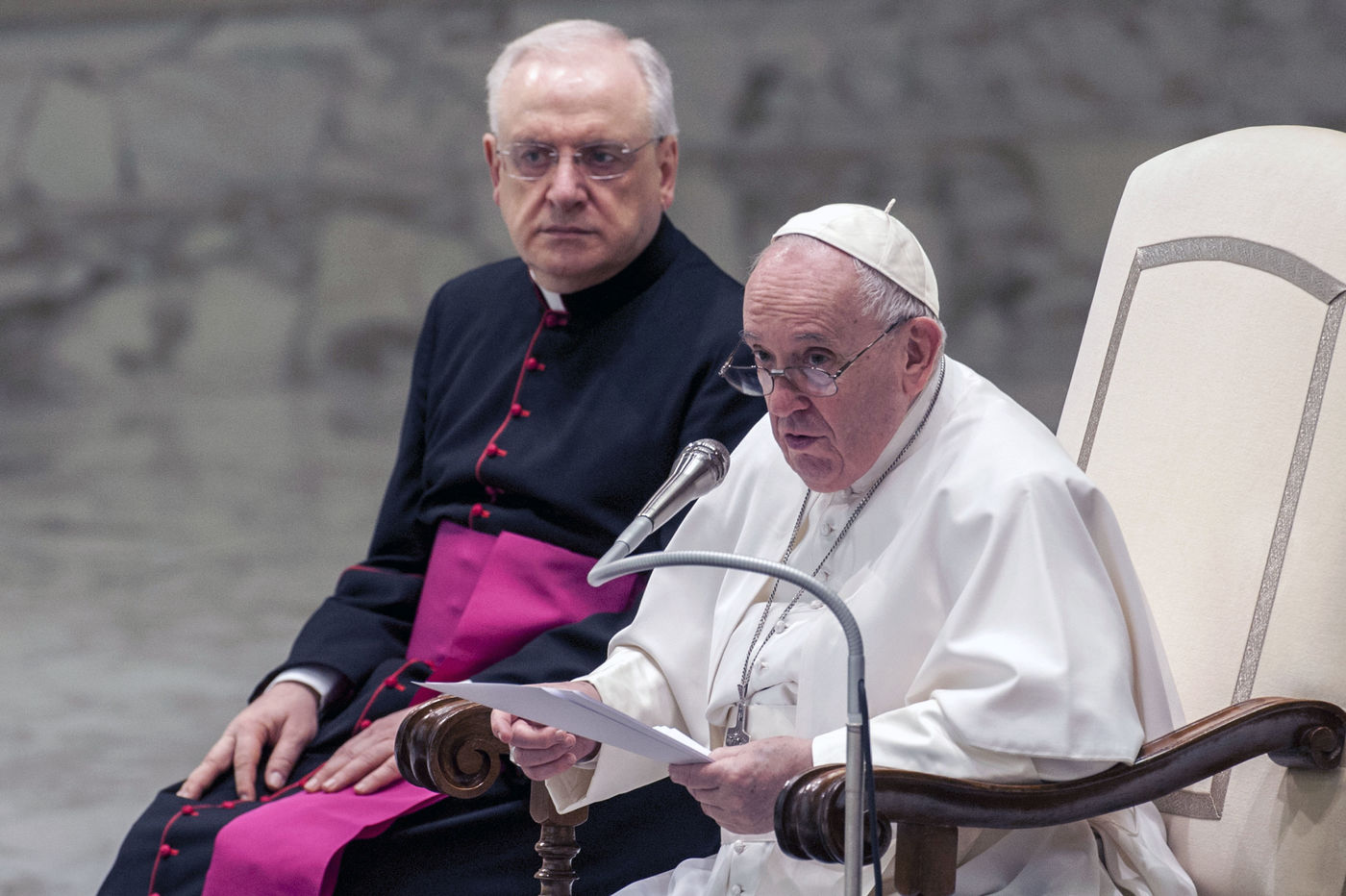 Italy, Rome, Vatican, 22/03/30. Pope Francis leads his weekly general audience in the Paul VI Hall.
