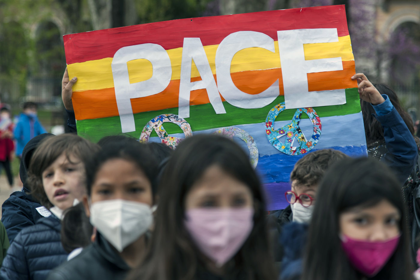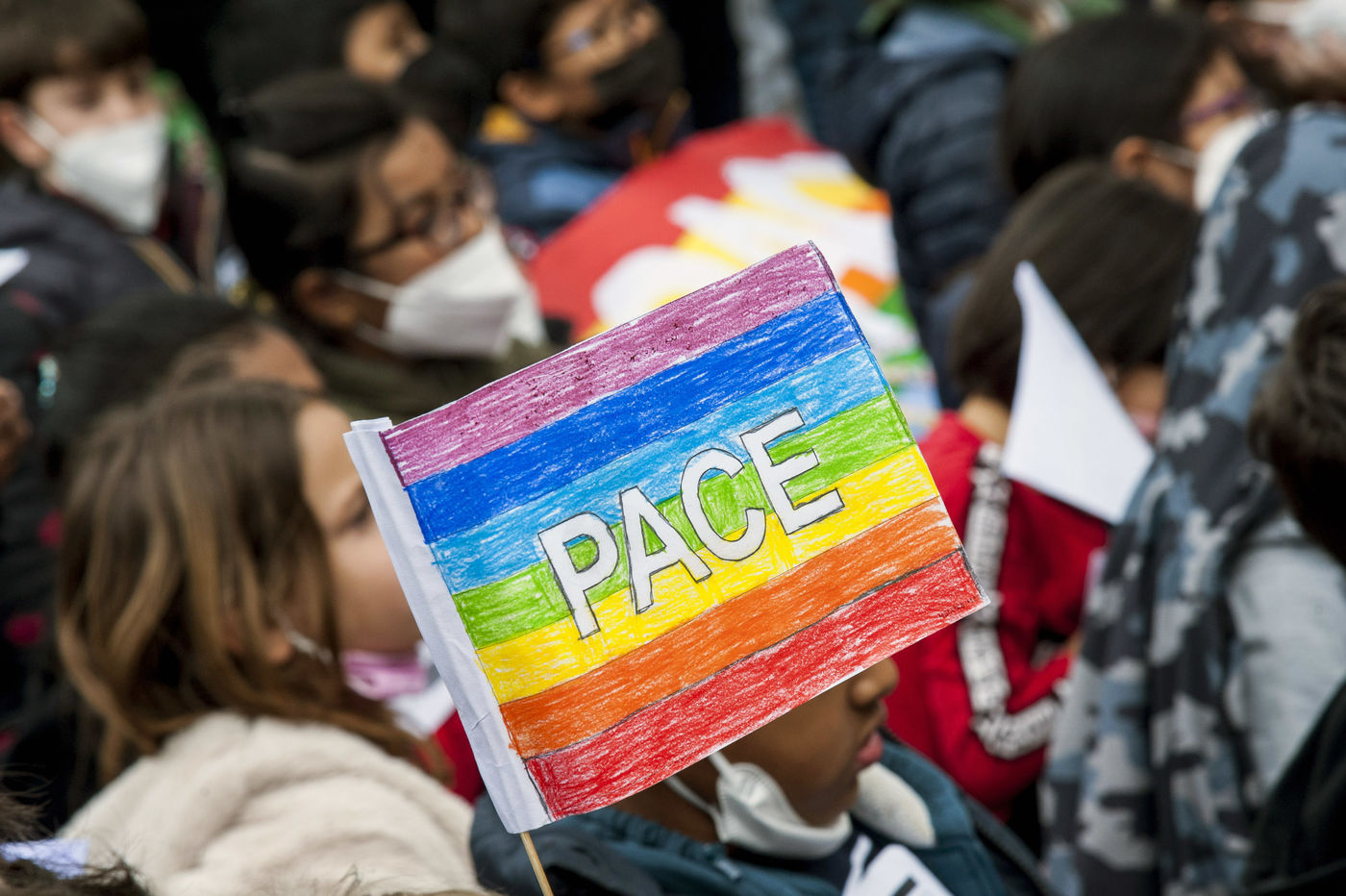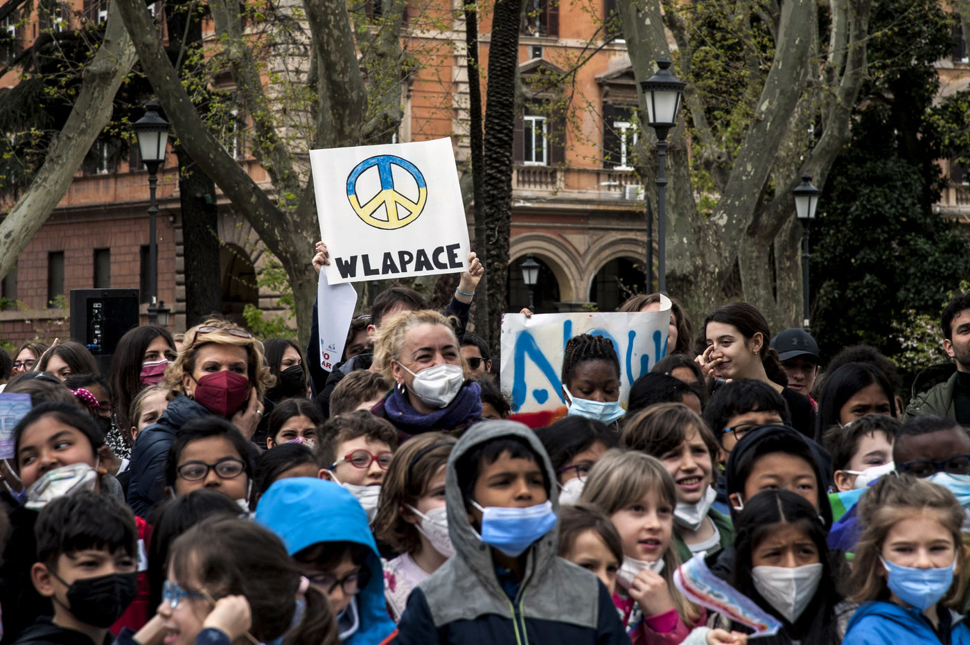 Rome4peace" event, promoted by the Youth for Peace, a youth movement of the Community of Sant'Egidio, in favour of peace in Ukraine, open to all schools of the Esquilino area, in Piazza Vittorio Emanuele.