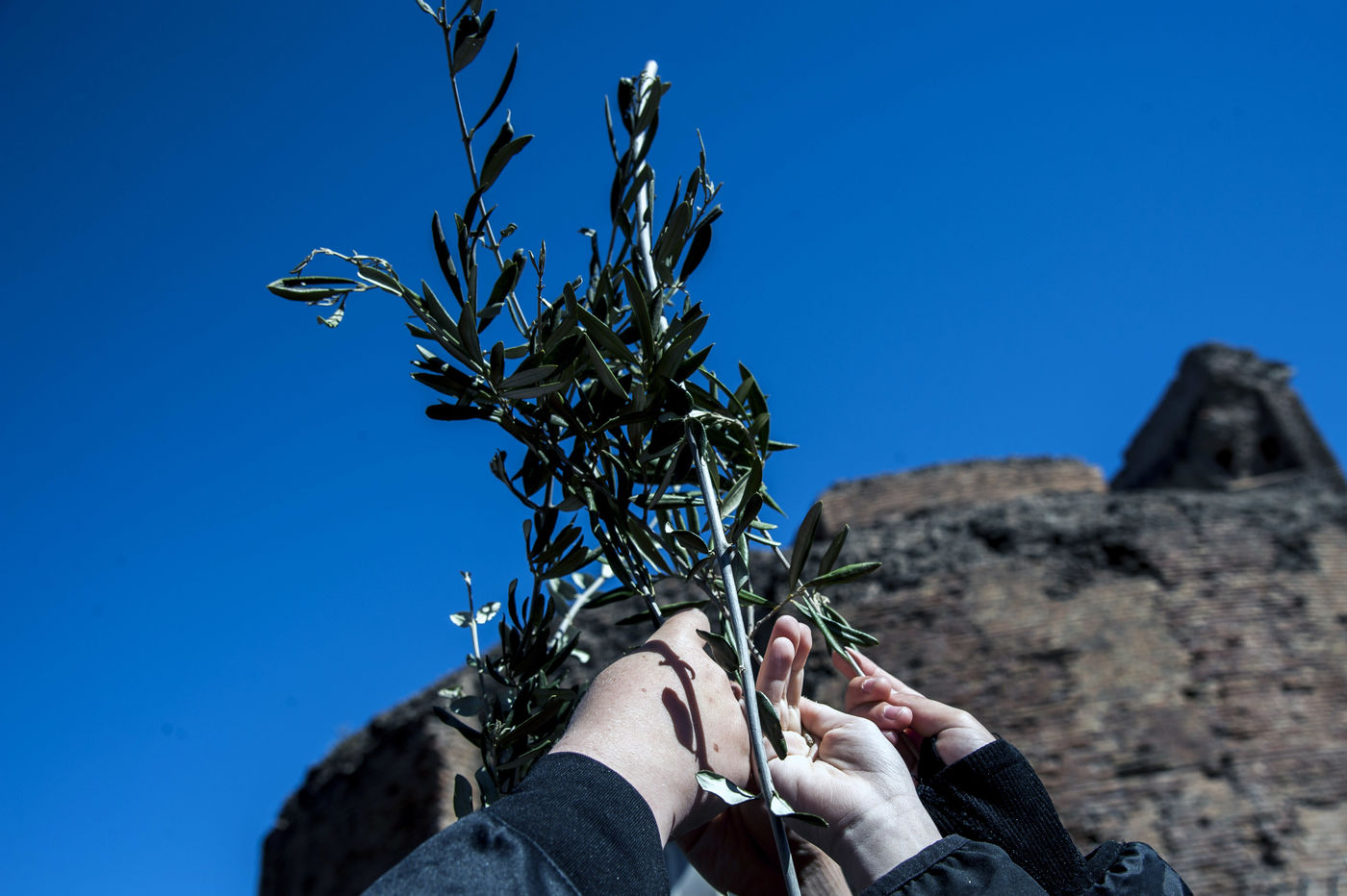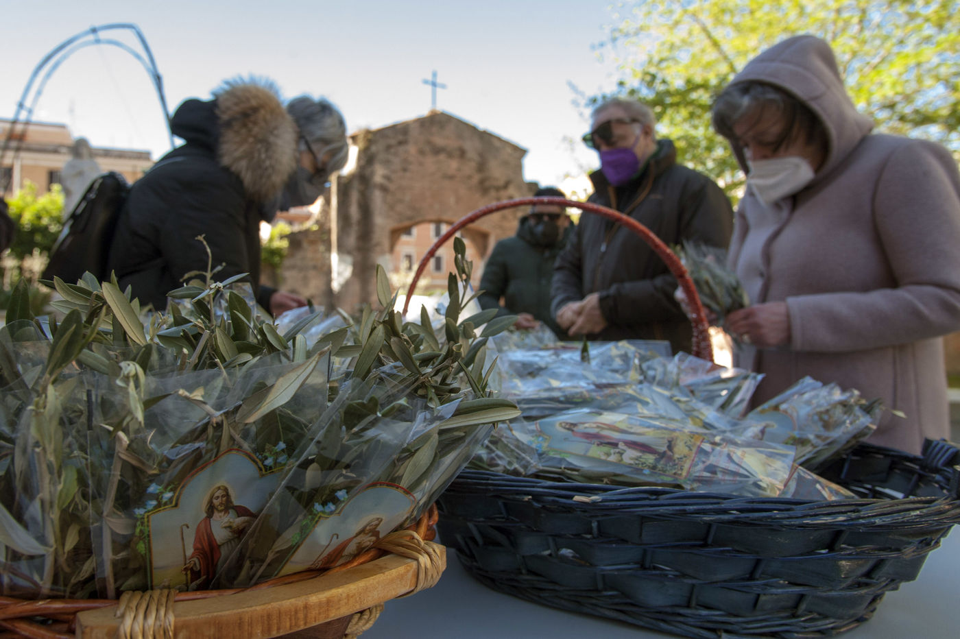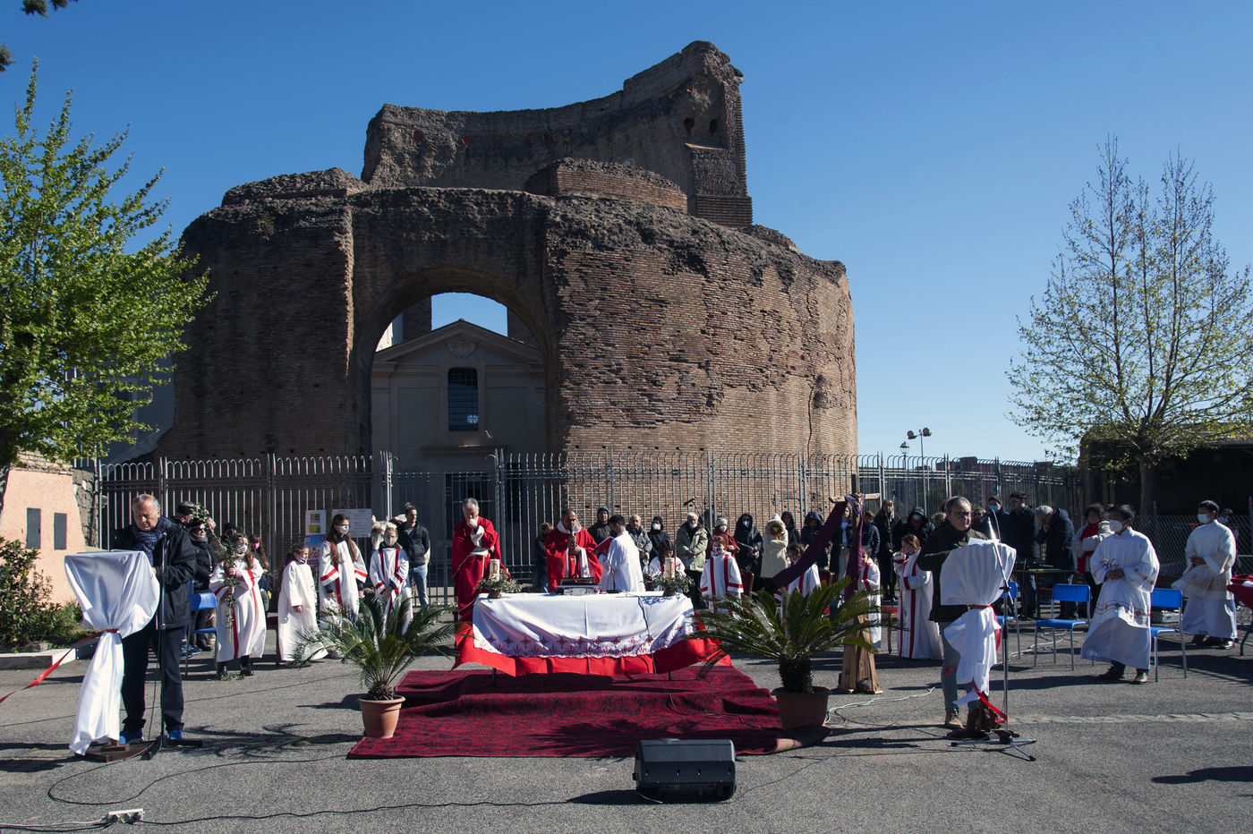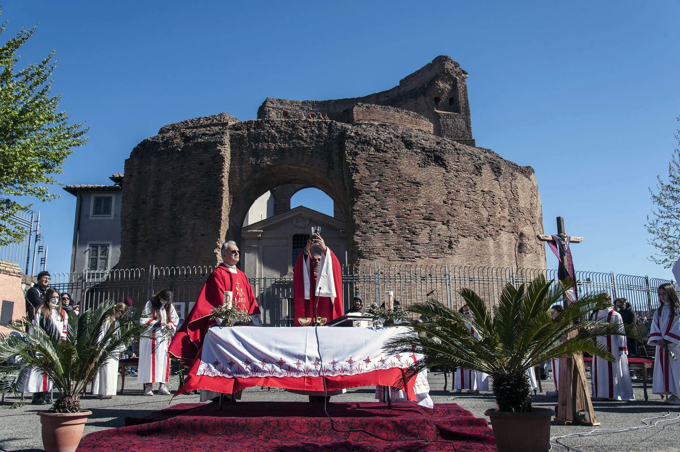 Italy, Rome, 22/04/10. Celebration of Palm Sunday Mass at the Church of Saints Marcellin and Peter ad Duas Lauros and the Mausoleum of St. Helen in the Roman outskirts of Via Casilina.