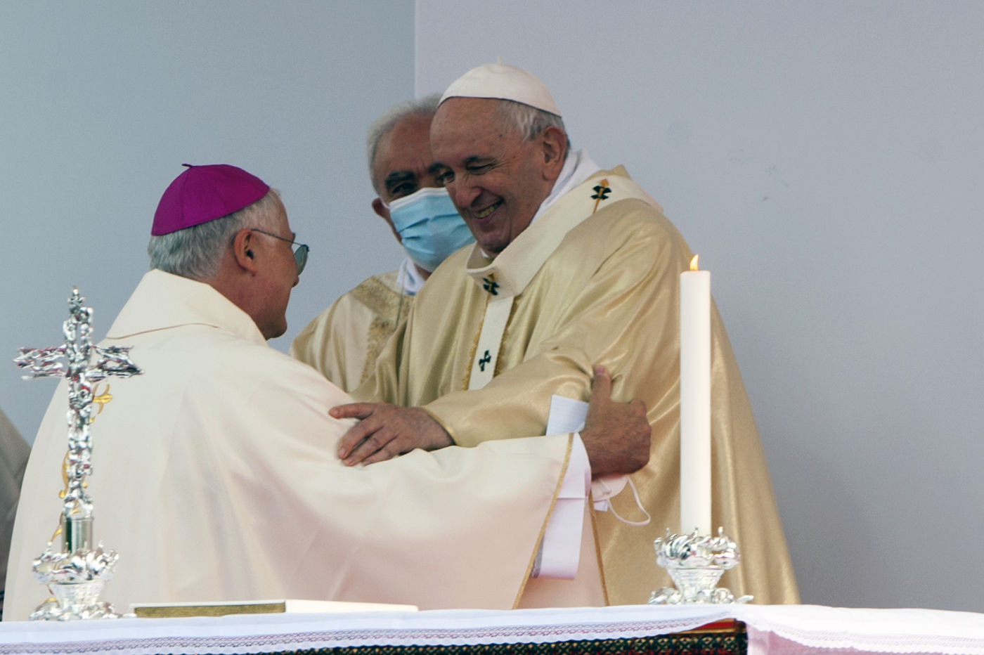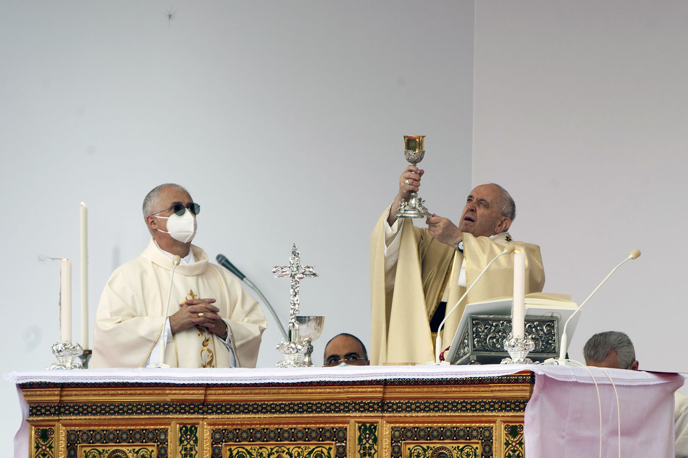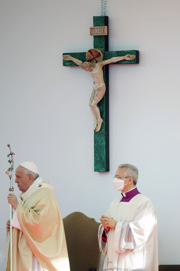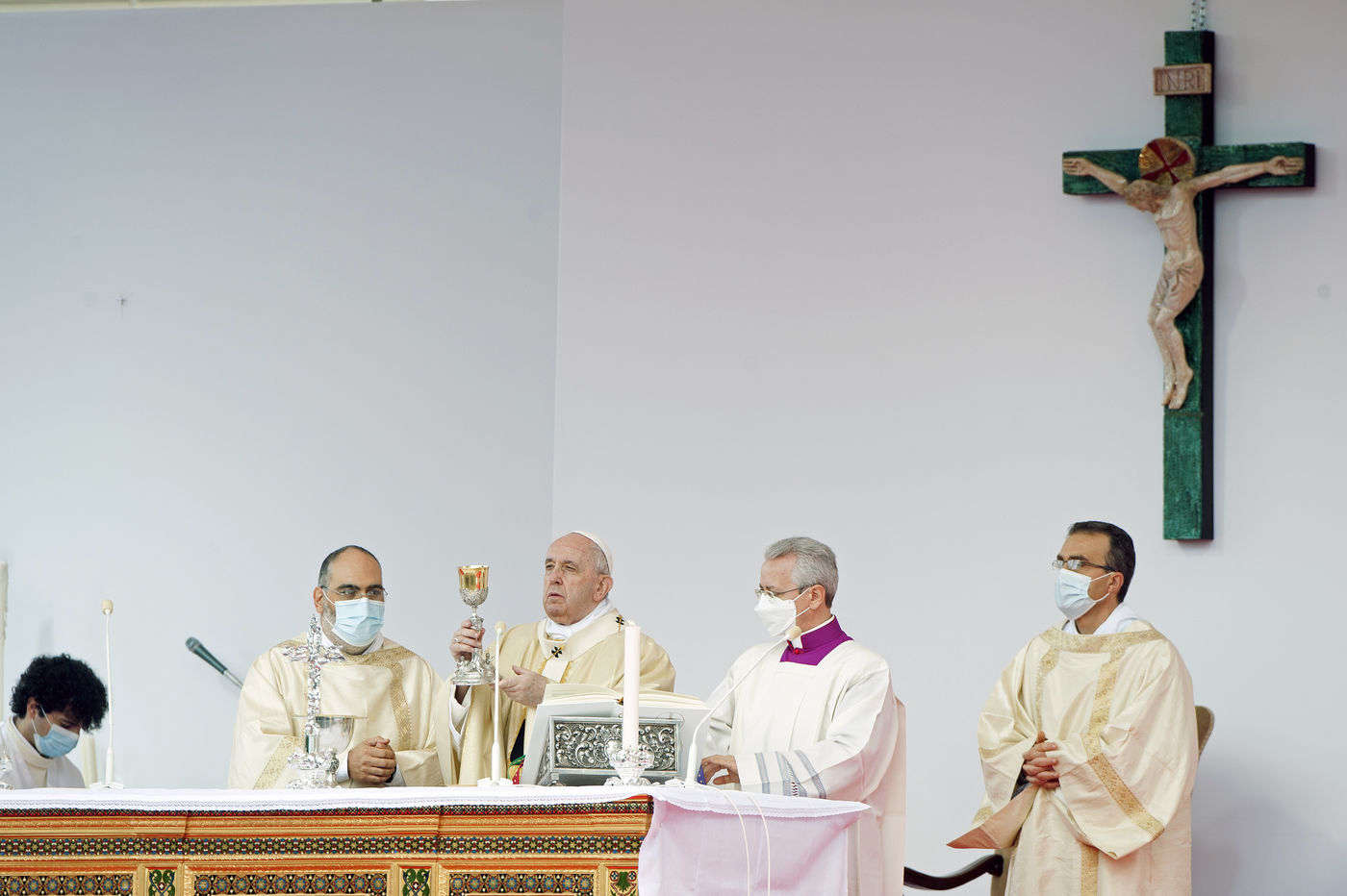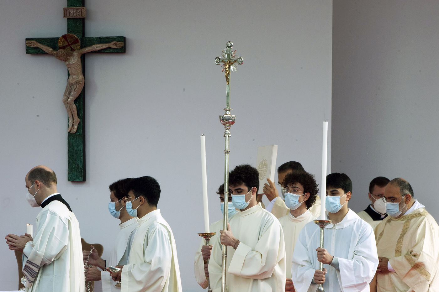 Italy, Rome, Vatican, 2021/11/5. Pope Francis celebrates a mass at Rome's Catholic University Of The Sacred Heart to help mark the 60th anniversary of its establishment, in Rome.