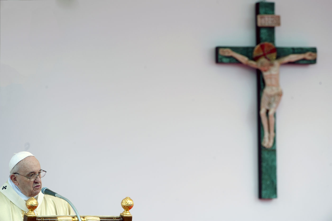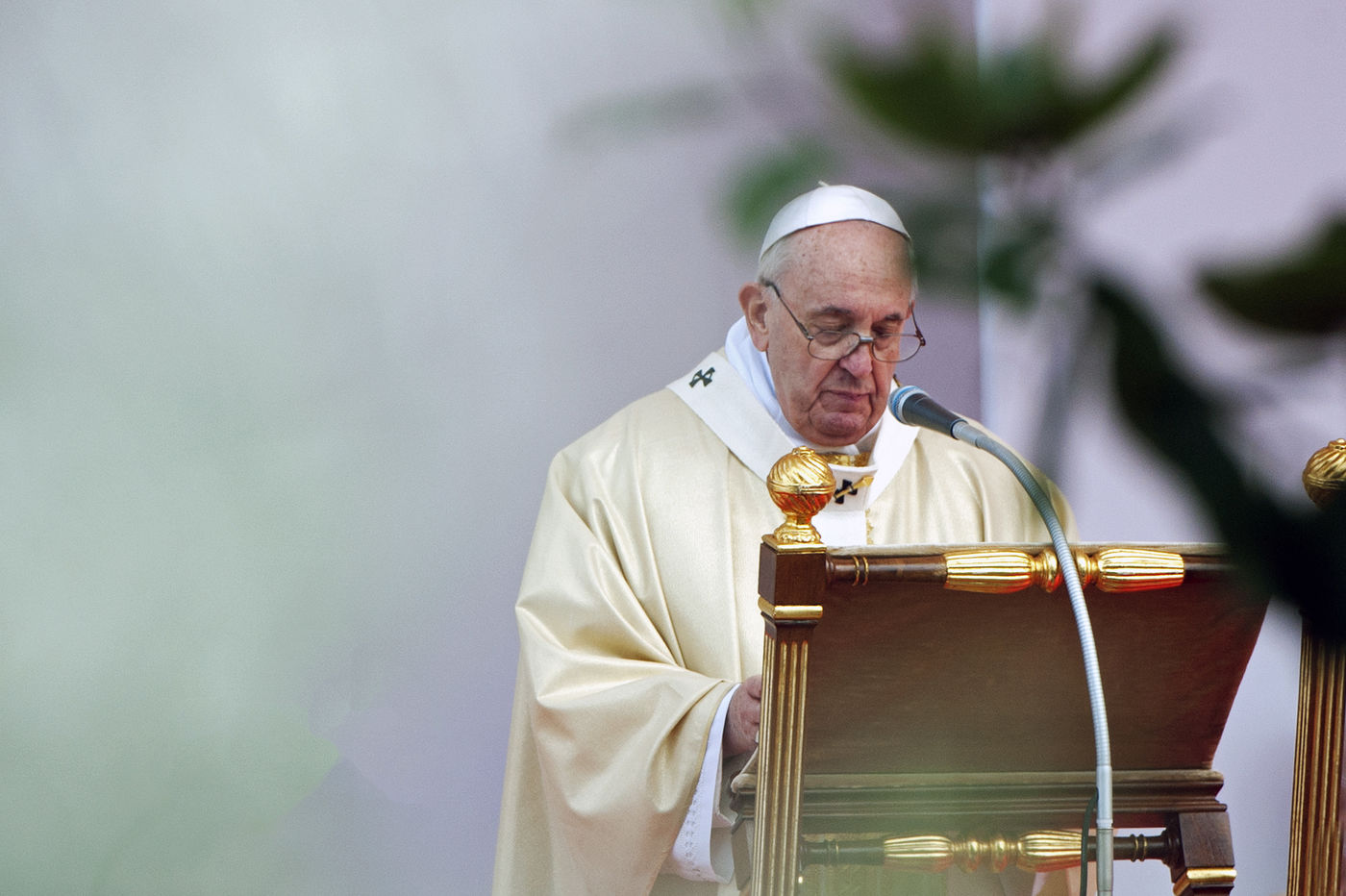 Pope Francis celebrates a mass at Rome's Catholic University Of The Sacred Heart