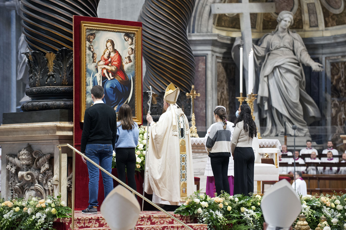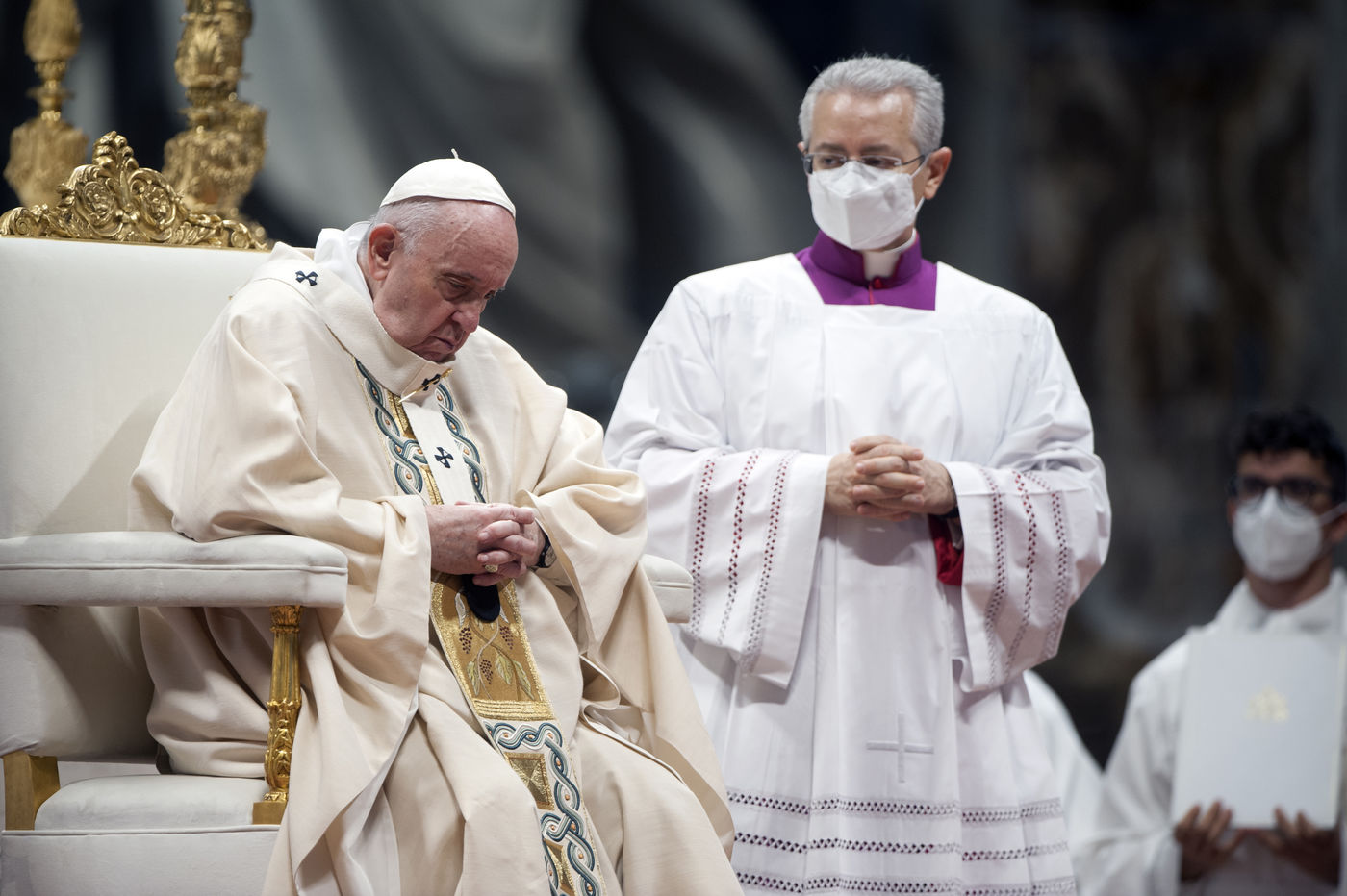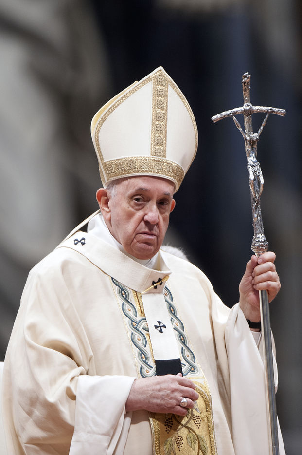 Italy, Rome, Vatican, 2021/11/21. Pope Francis celebrates Holy Mass on the Solemnity of Our Lord Jesus Christ King of the Universe XXXVI World Youth Day in the Vatican Basilica.