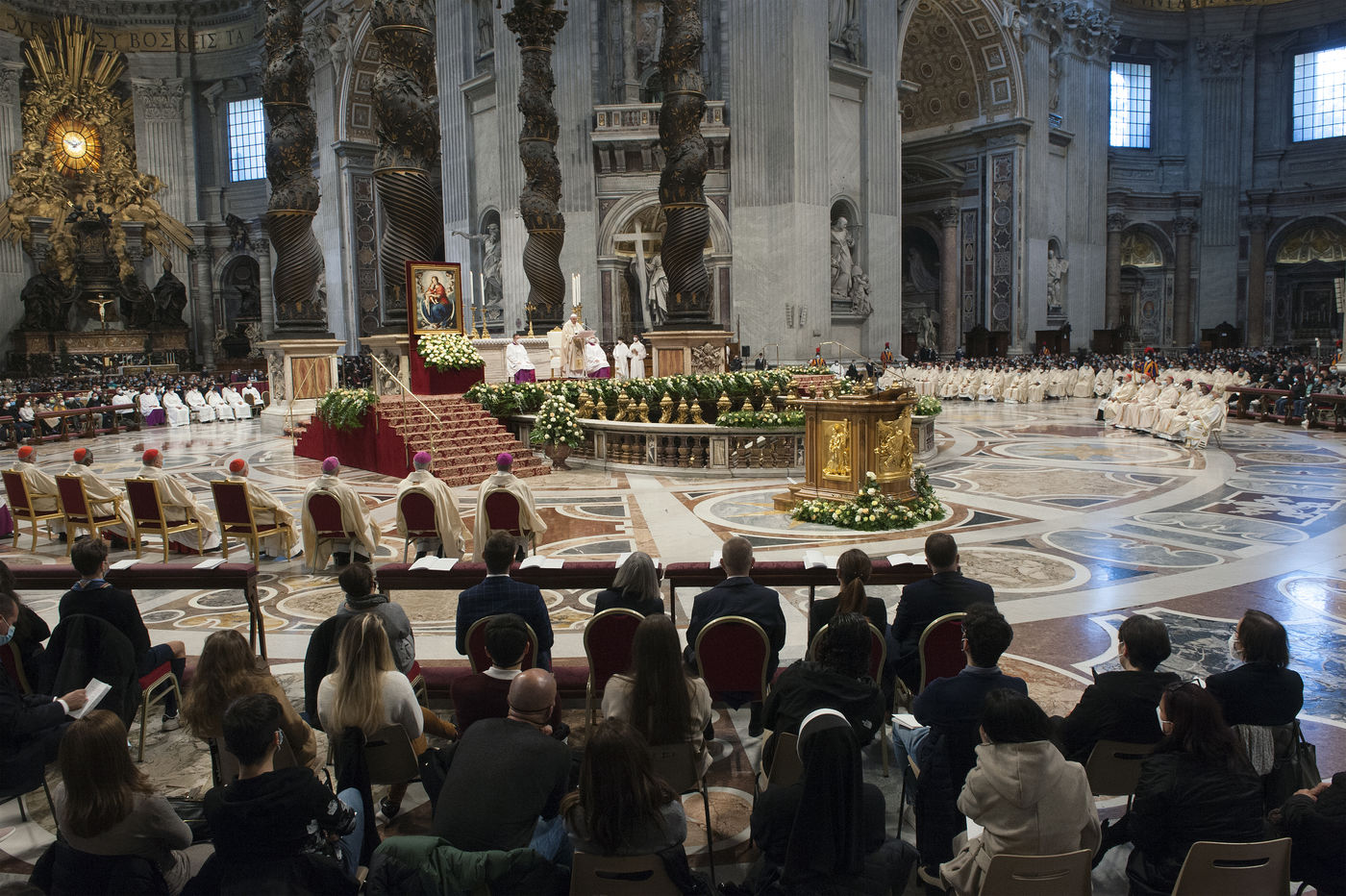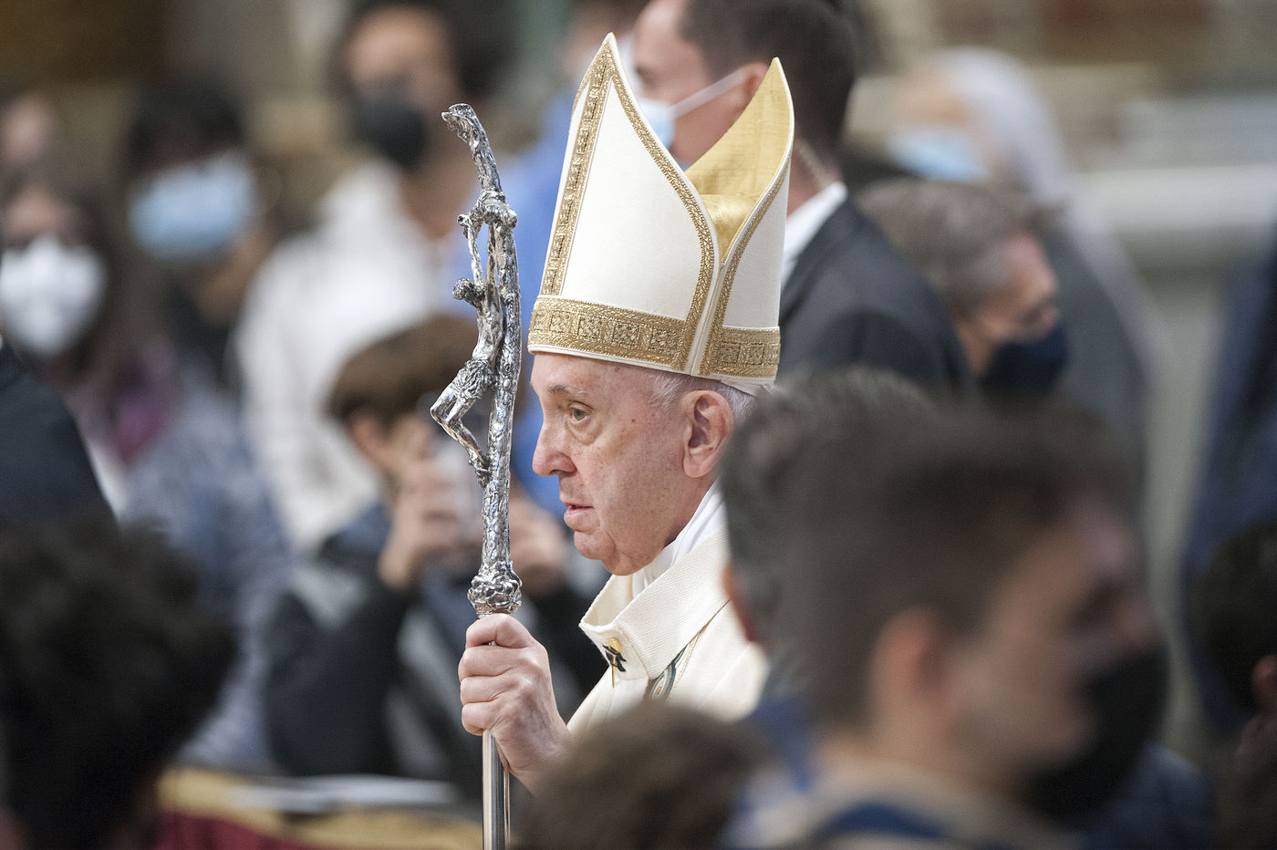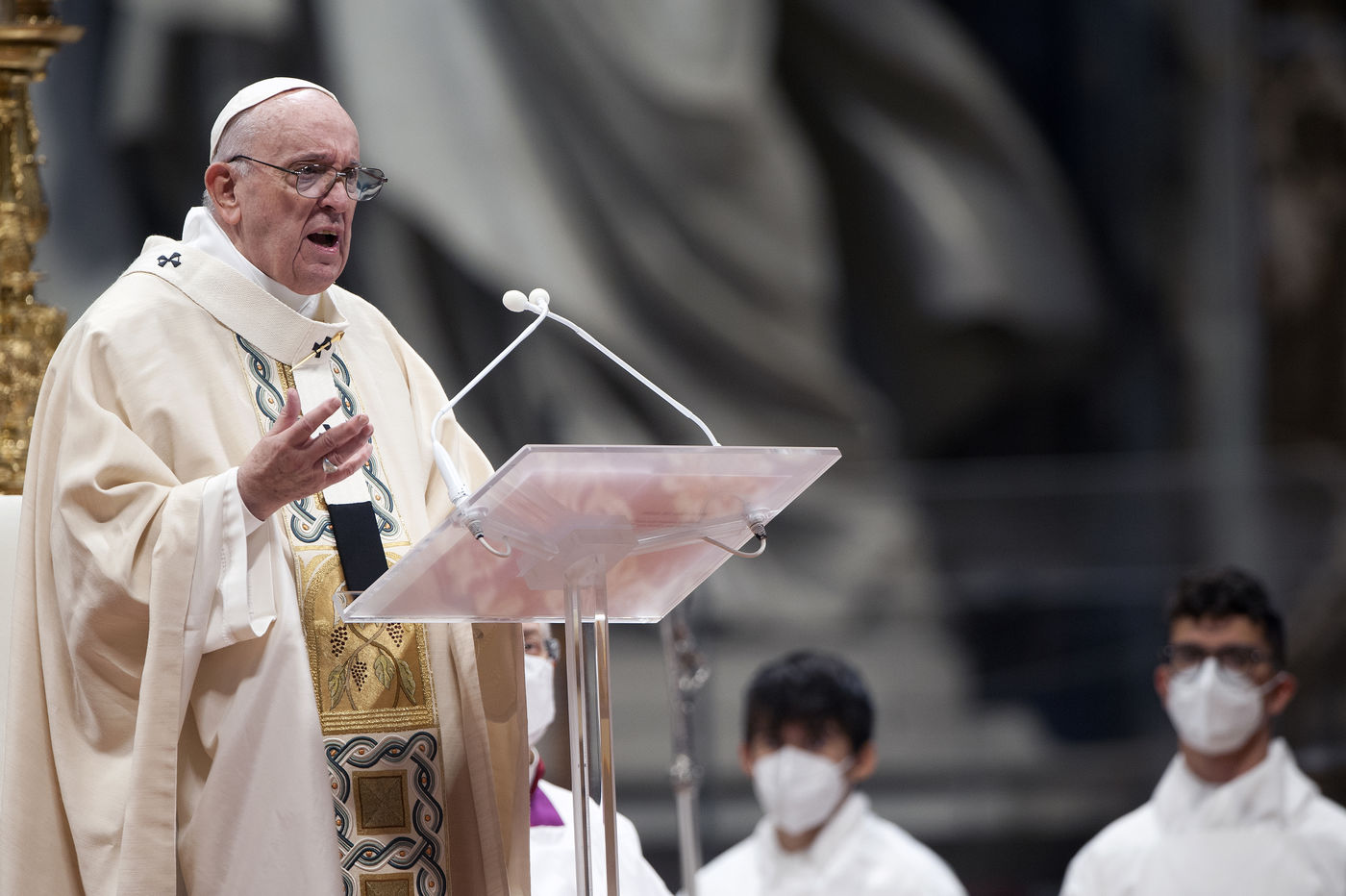 Italy, Rome, Vatican, 2021/11/21. Pope Francis celebrates Holy Mass on the Solemnity of Our Lord Jesus Christ King of the Universe XXXVI World Youth Day in the Vatican Basilica.