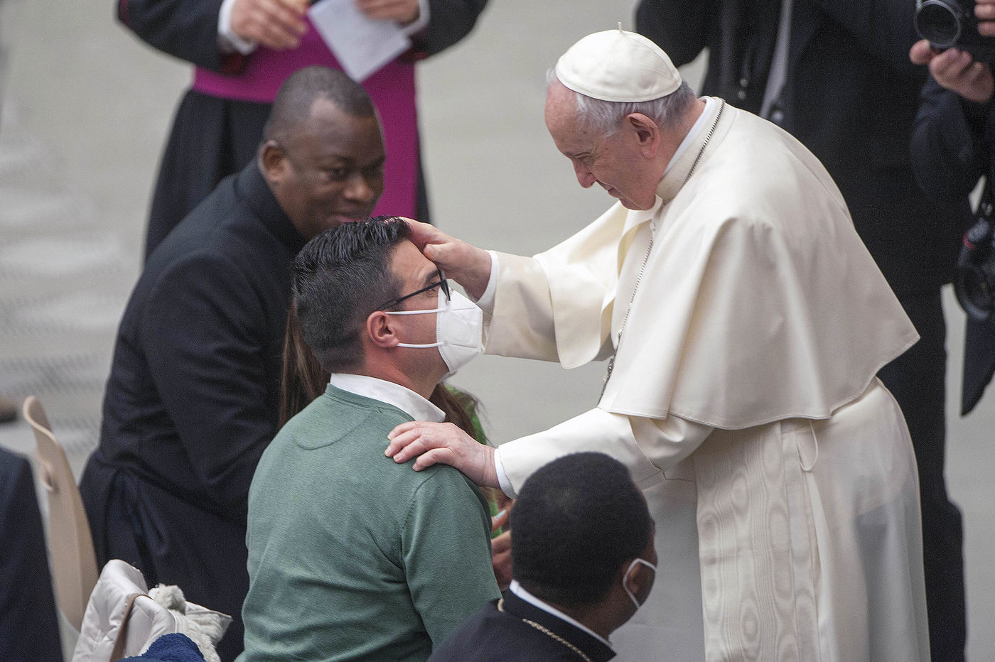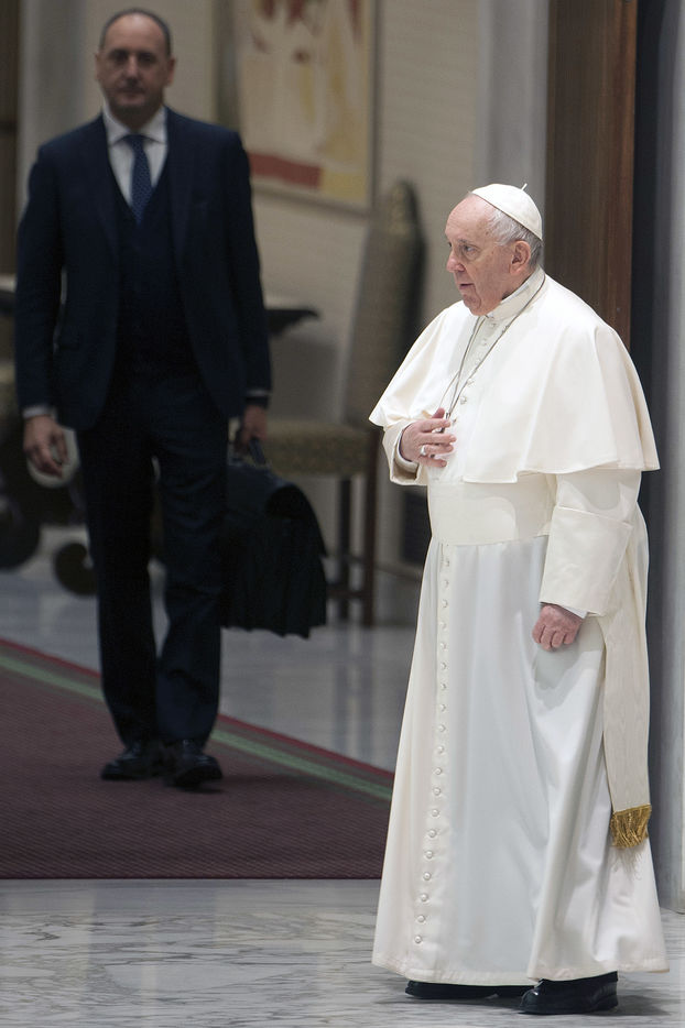 Italie, Rome, Vatican, 2022/02/23. Le pape François pendant l'audience générale hebdomadaire dans la salle Paul VI au Vatican.