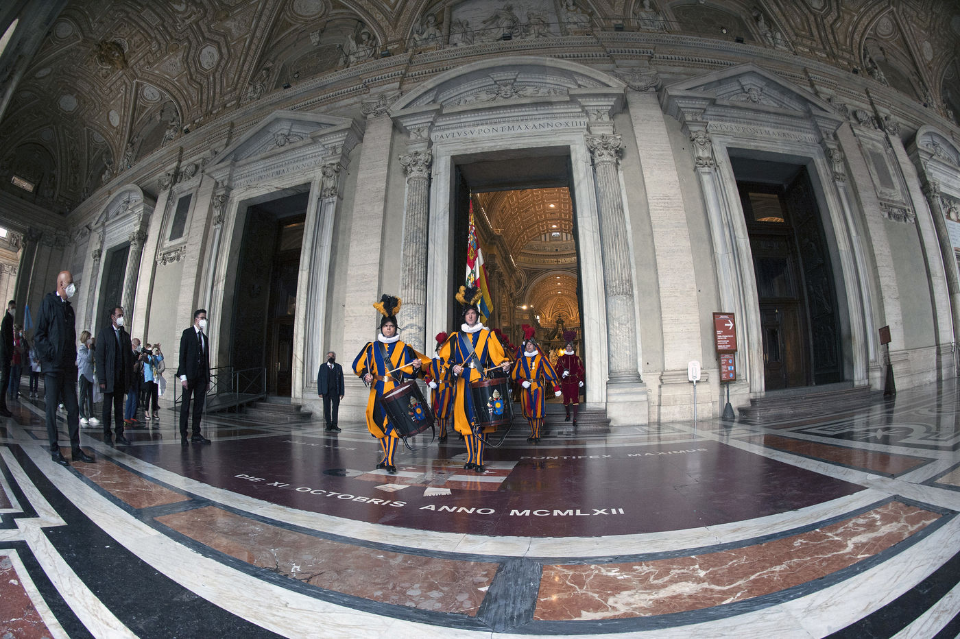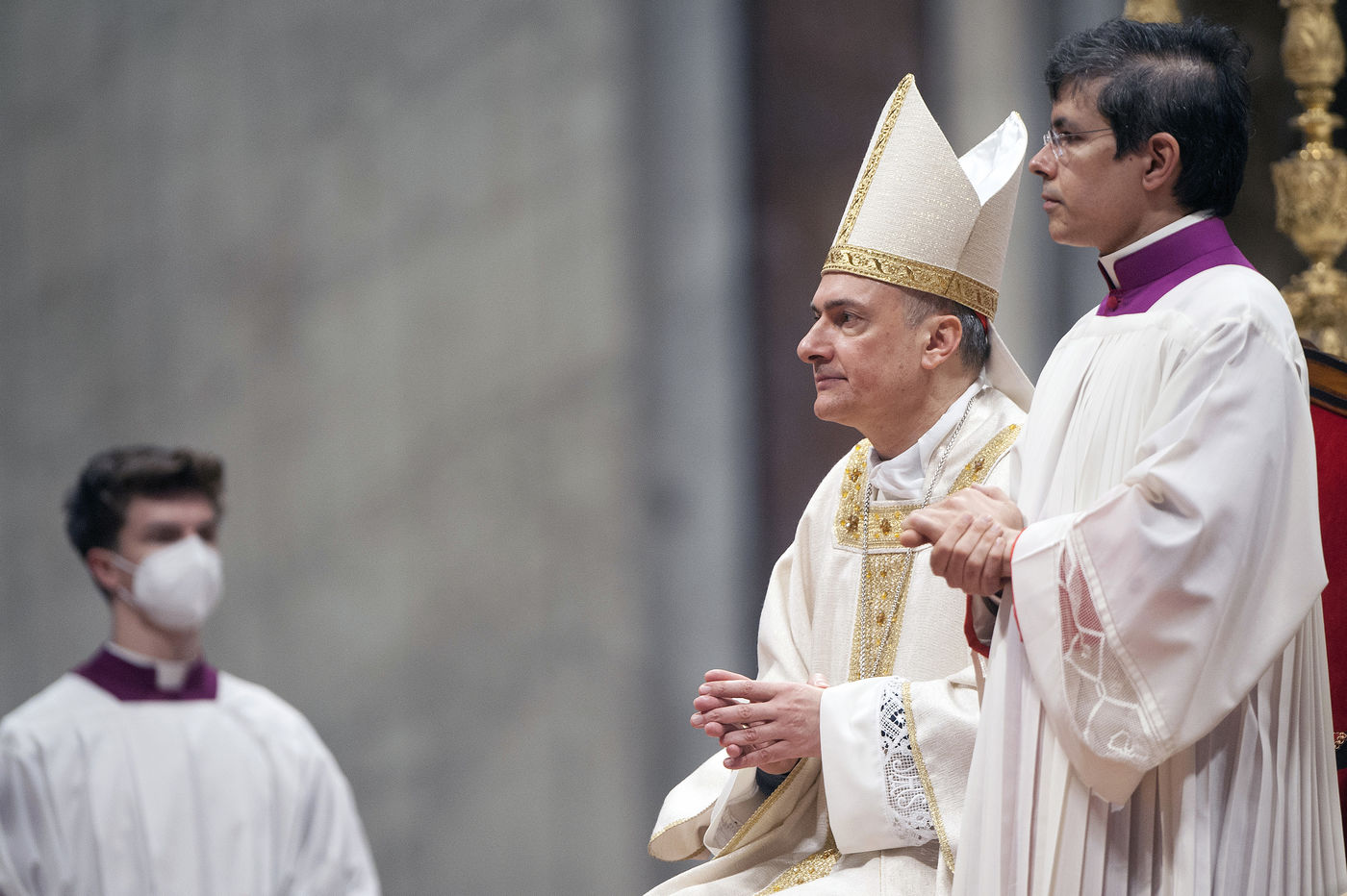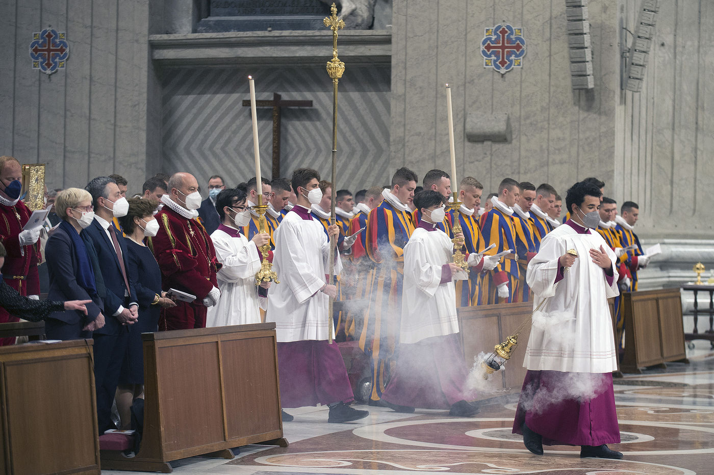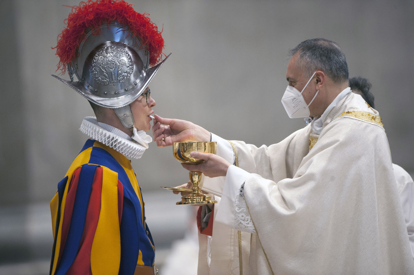 Italy, Rome, Vatican, 2022/05/06. S. Em. Card. Mauro Gambetti, Archpriest of the Papal Basilica of St. Peter's celebrates the mass on the occasion of the jubilee of the Swiss Guards in the Vatican.