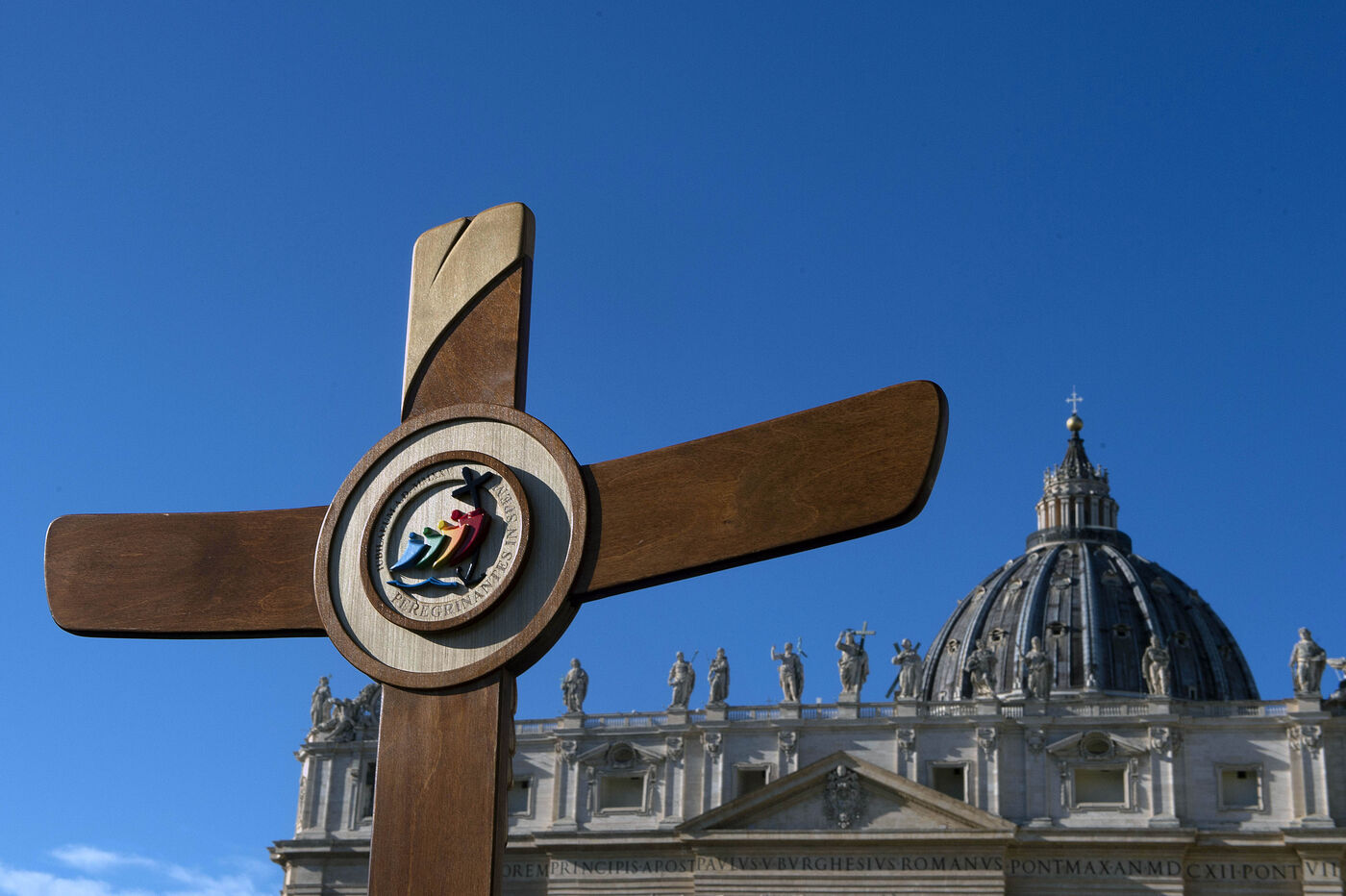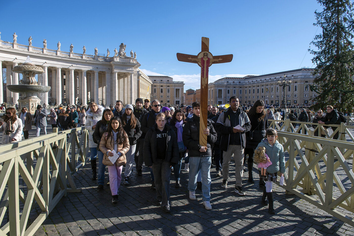 Pope Francis delivers his blessing to the faithful during the Angelus prayer at St Peter's square in the Vatican, 2024/12/26.
