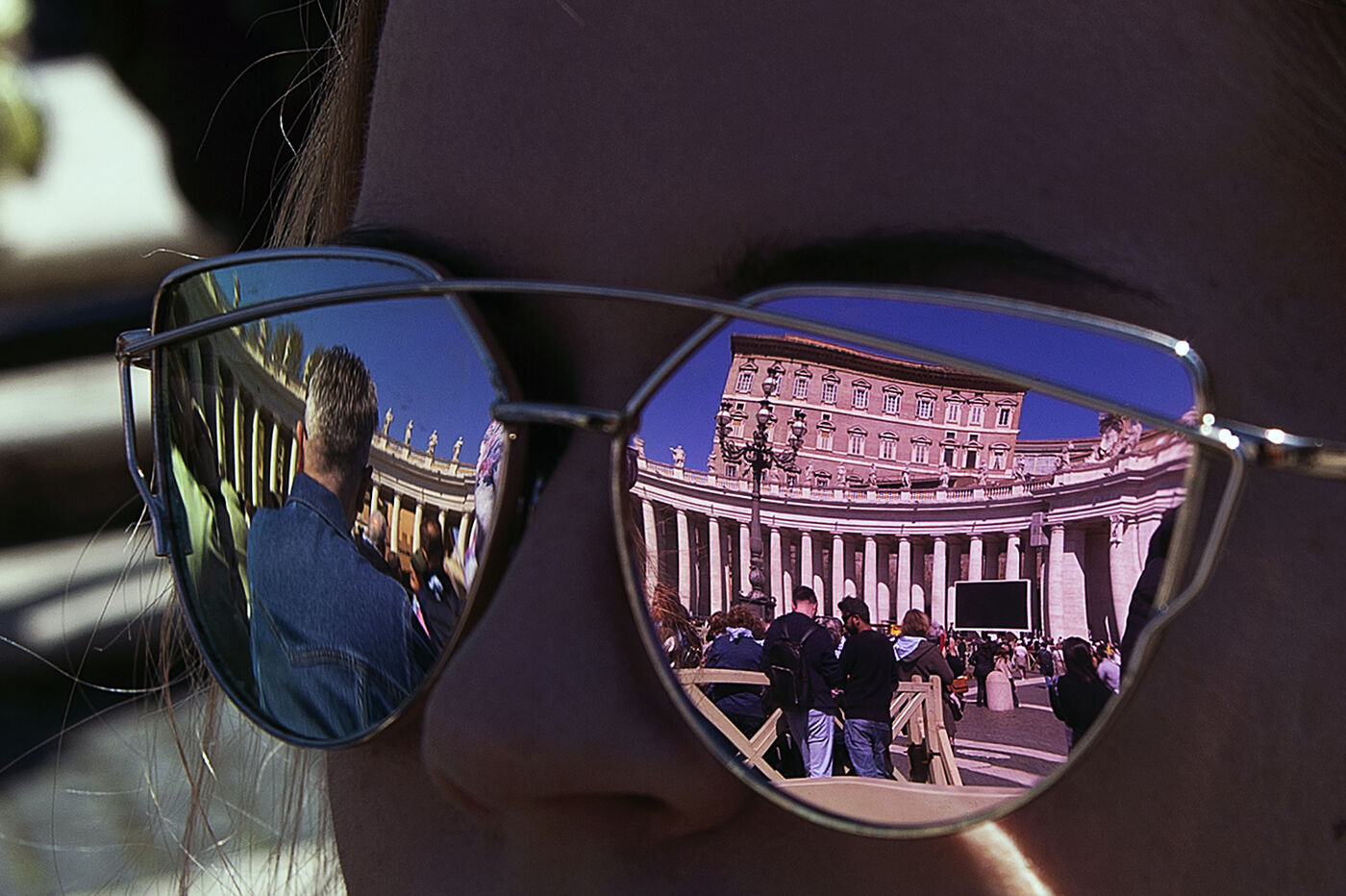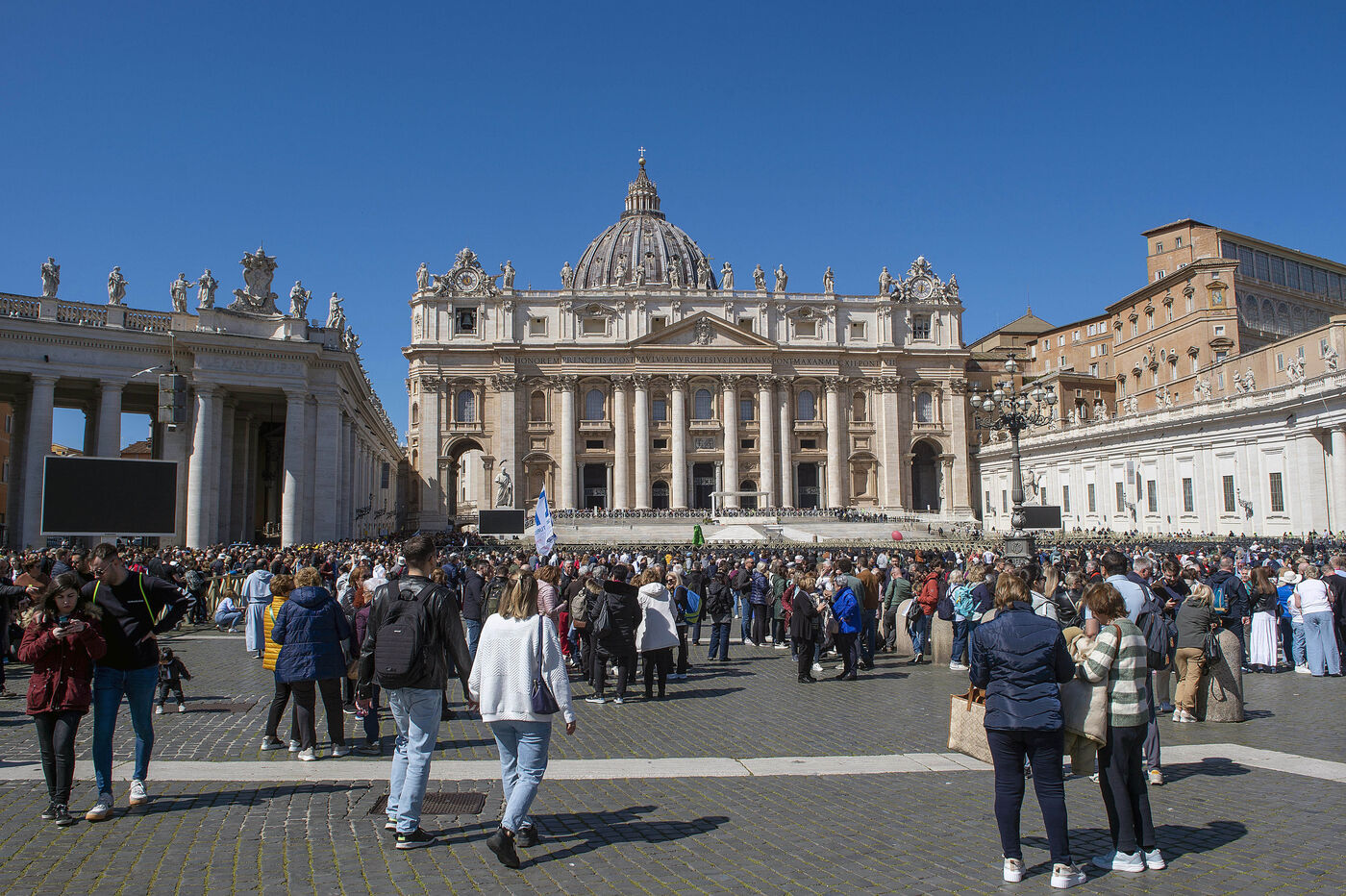Des fidèles se promènent sur la place Saint-Pierre