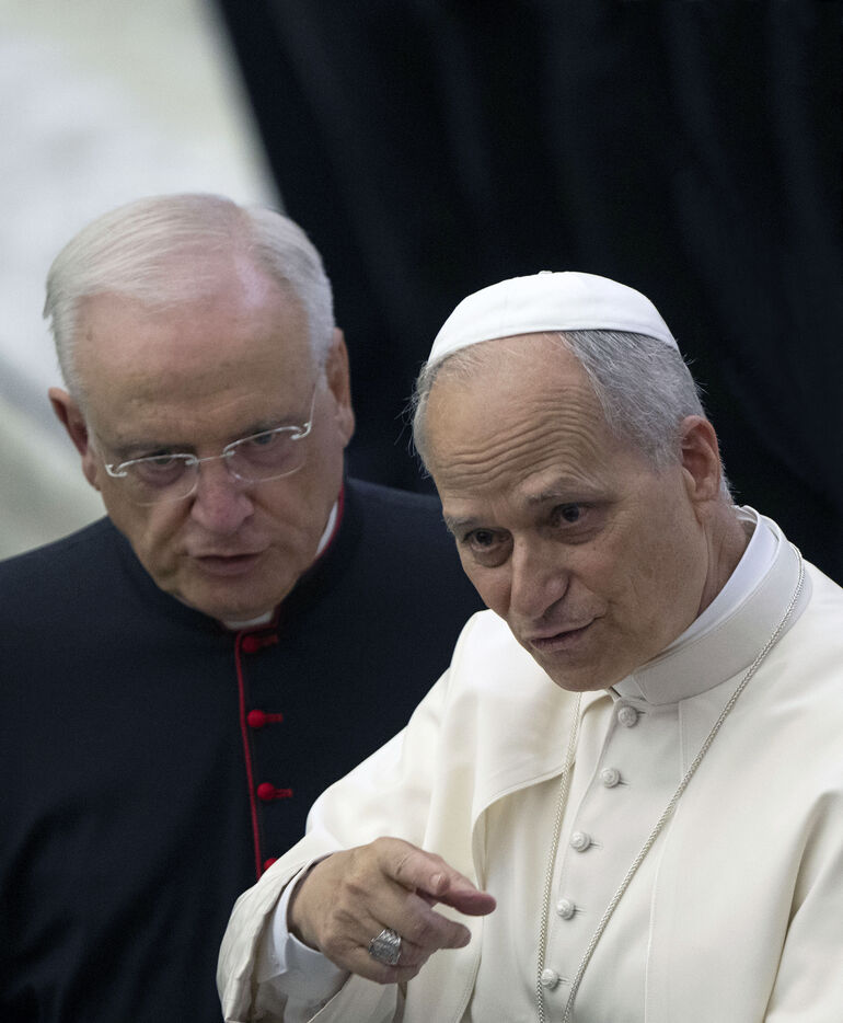 Le pape Léon XIV lors de l'audience générale dans la salle Paul VI au Vatican le 2025/8/27.