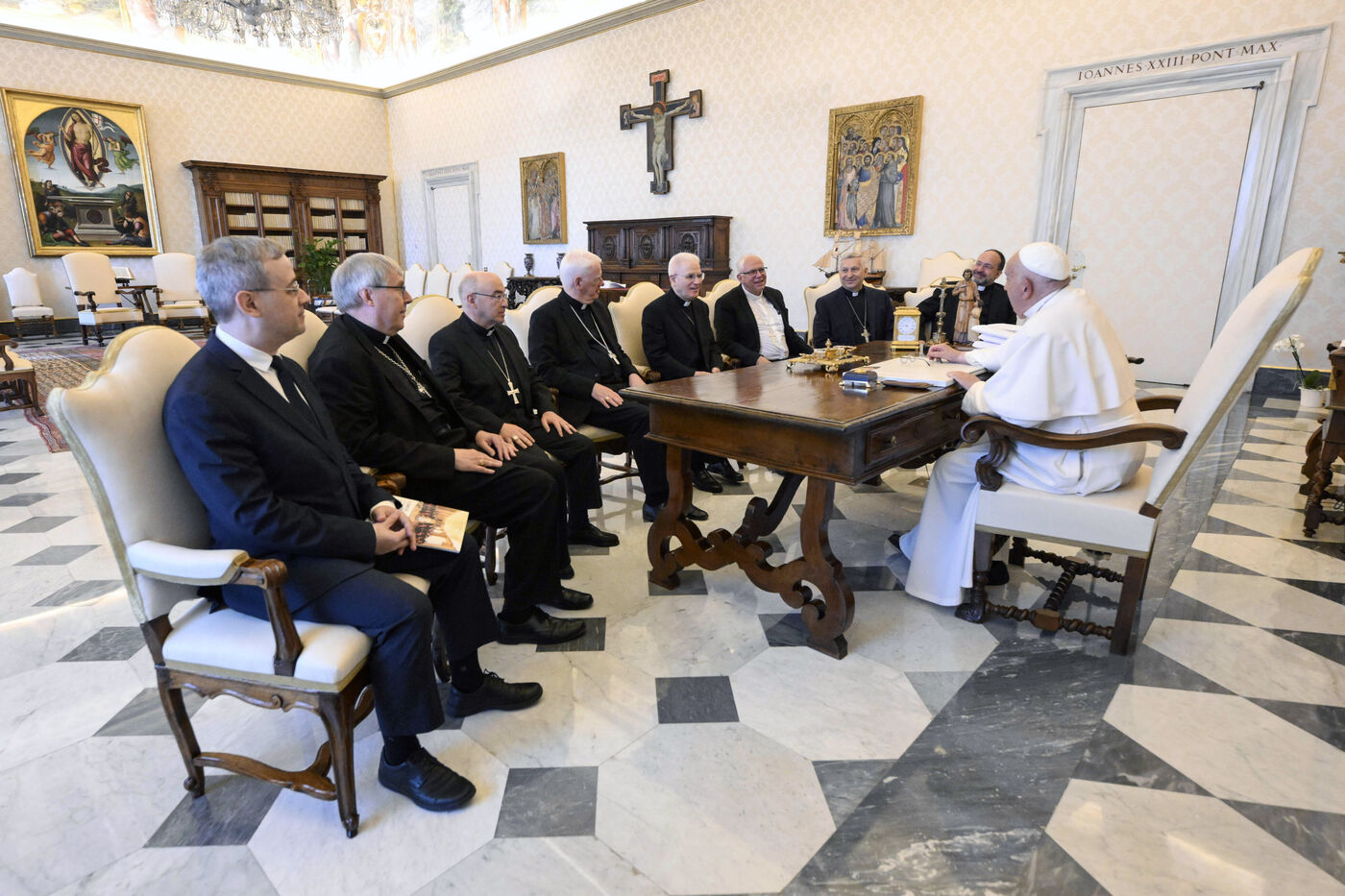 Pope Francis during a private audience with Members of the Presidency of the Commission of the Bishops' Conferences of the European Union (COMECE) in The Vatican, Italy, 2024/6/22.