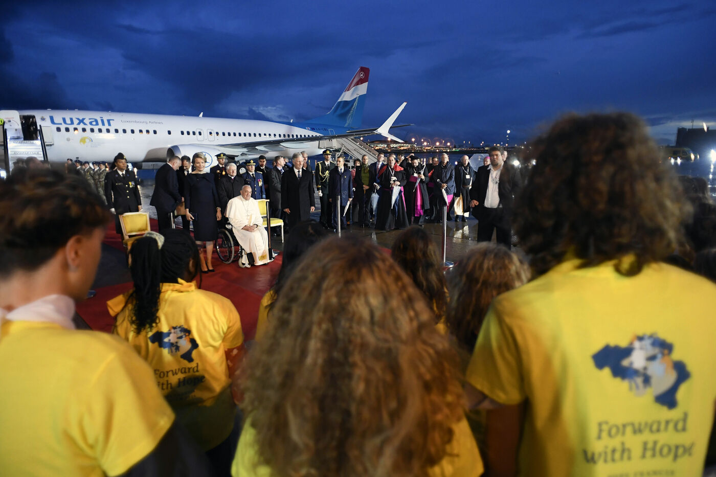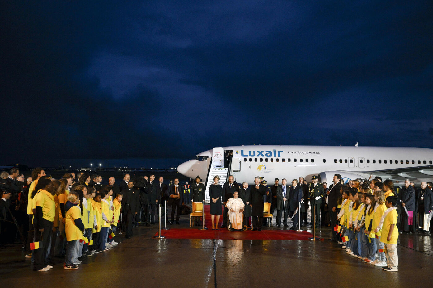 After spending the day in Luxembourg, Pope François arrived in Belgium. He was officially welcomed by the local authorities at Melsbroek air base, near Brussels. The Holy Father thus begins a three-day visit to Belgium, taking in Brussels, Louvain and Louvain-la-Neuve.