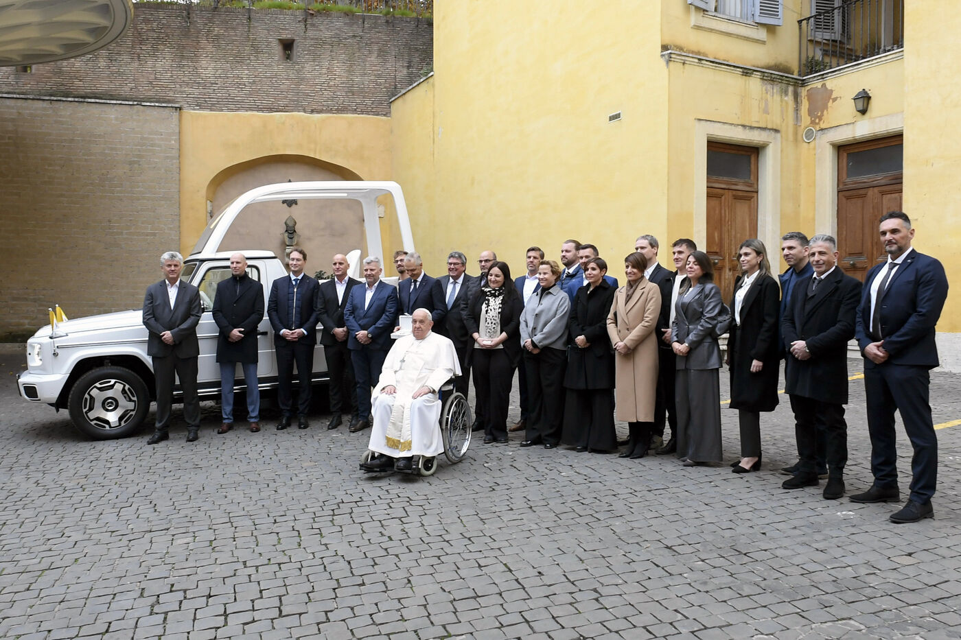 Pope Francis is presented a new fully electric popemobile at the Vatican on 2024/12/4.