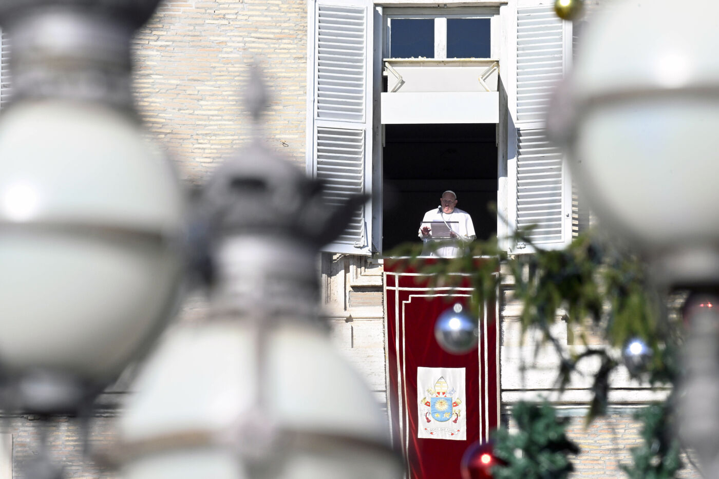 Pope Francis delivers his blessing to the faithful during the Angelus prayer at St Peter's square in the Vatican, 2024/12/26.