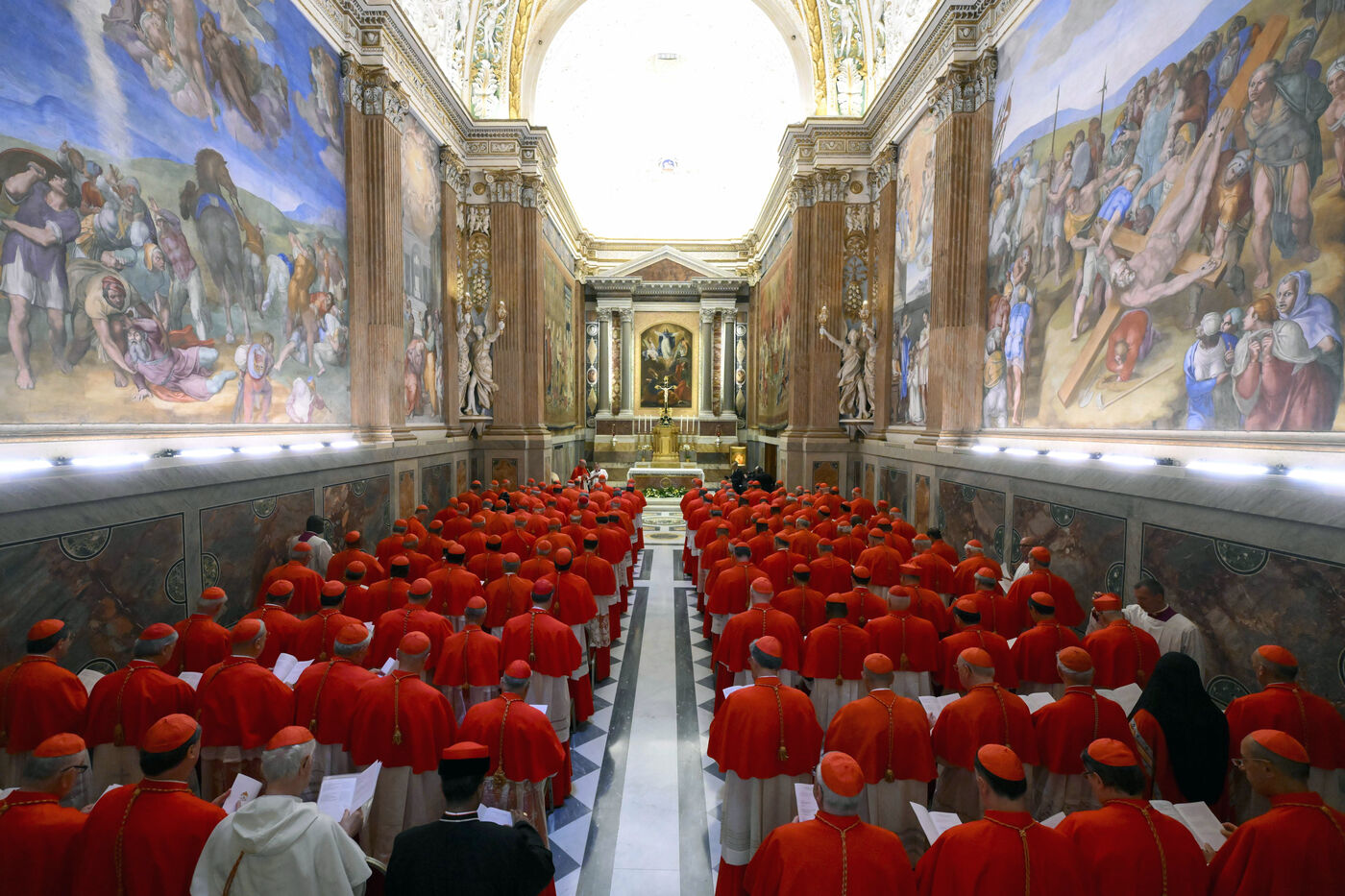 Vatican Pauline Chapel - Sistine Chapel - Entry into Conclave and the oath of office in Vatican on 07-05-2025.