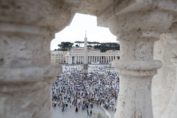 Italy, Rome, Vatican, 21/09/19. Faithful attend the Angelus noon prayer in Saint Peter's Square in the Vatican.