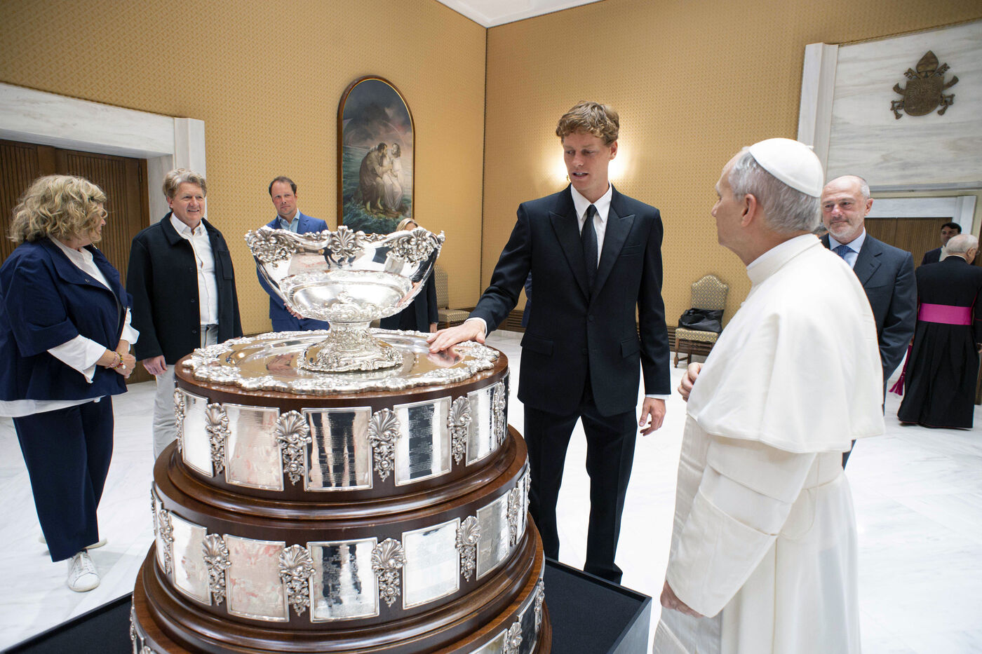 Vatican, 2025/5/14. Le pape Léon XIV reçoit en audience privée l'audition de Jannik Sinner au Vatican.