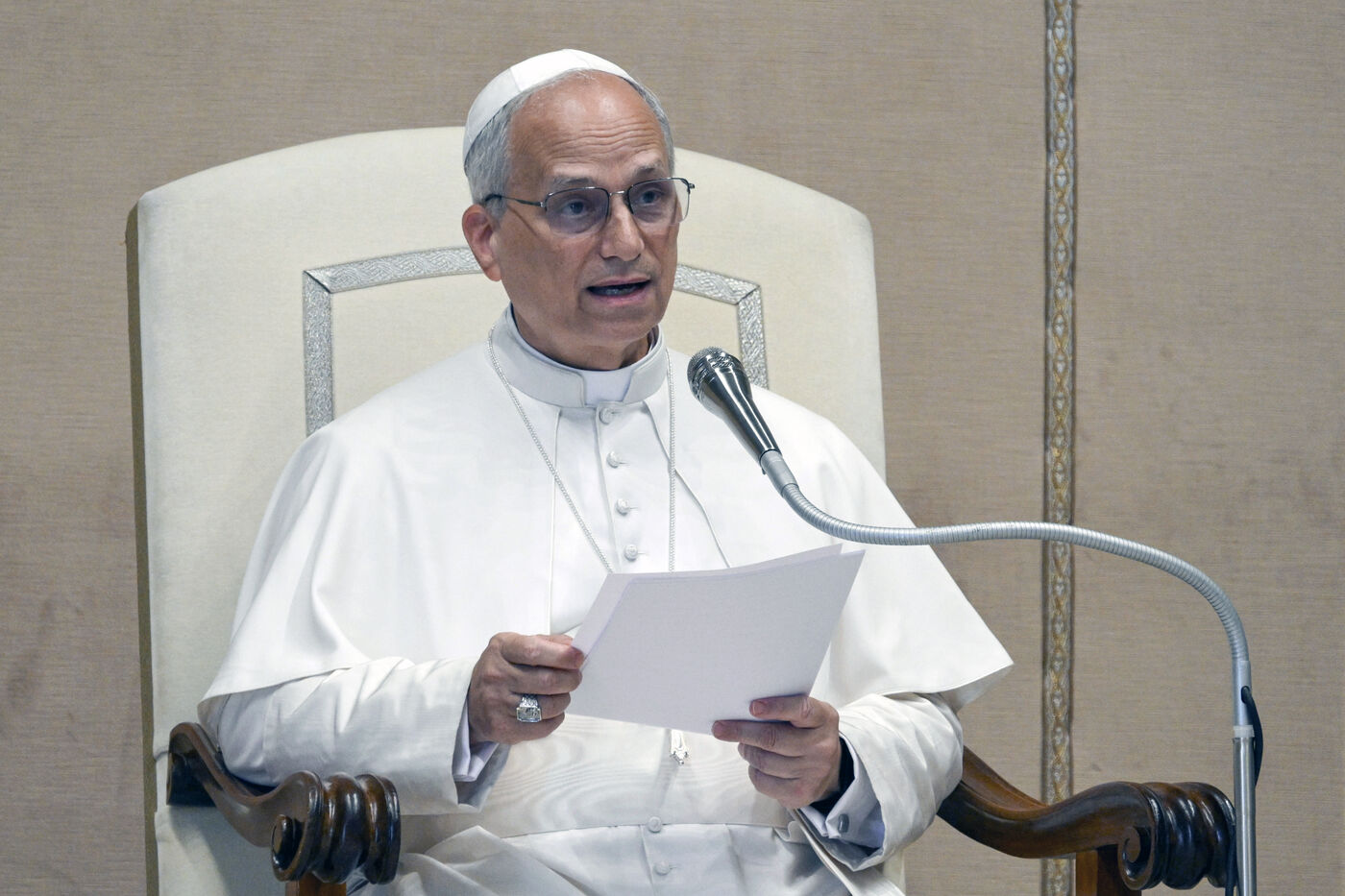 Le pape Léon XIV lors d'une audience avec les évêques italiens