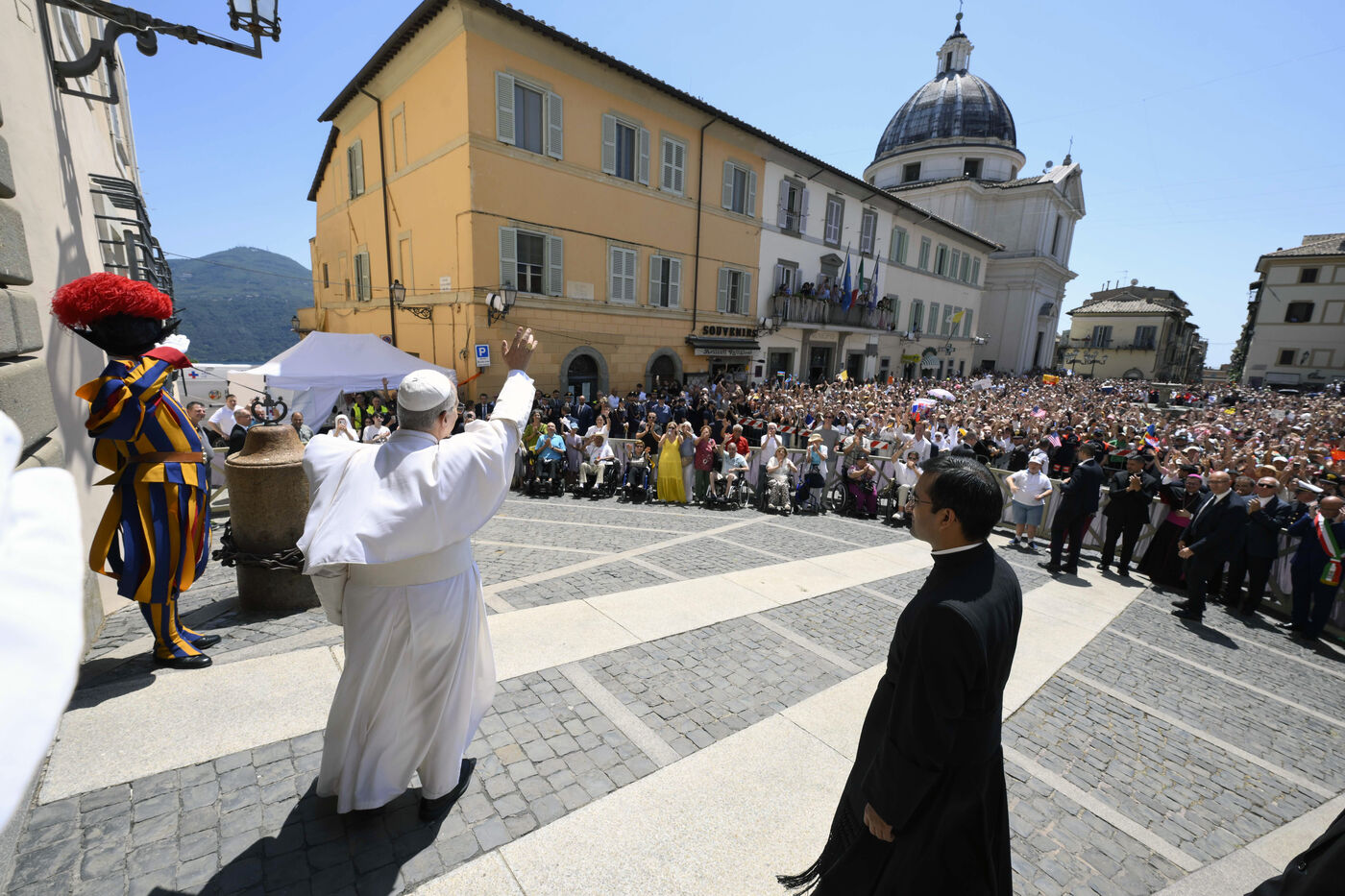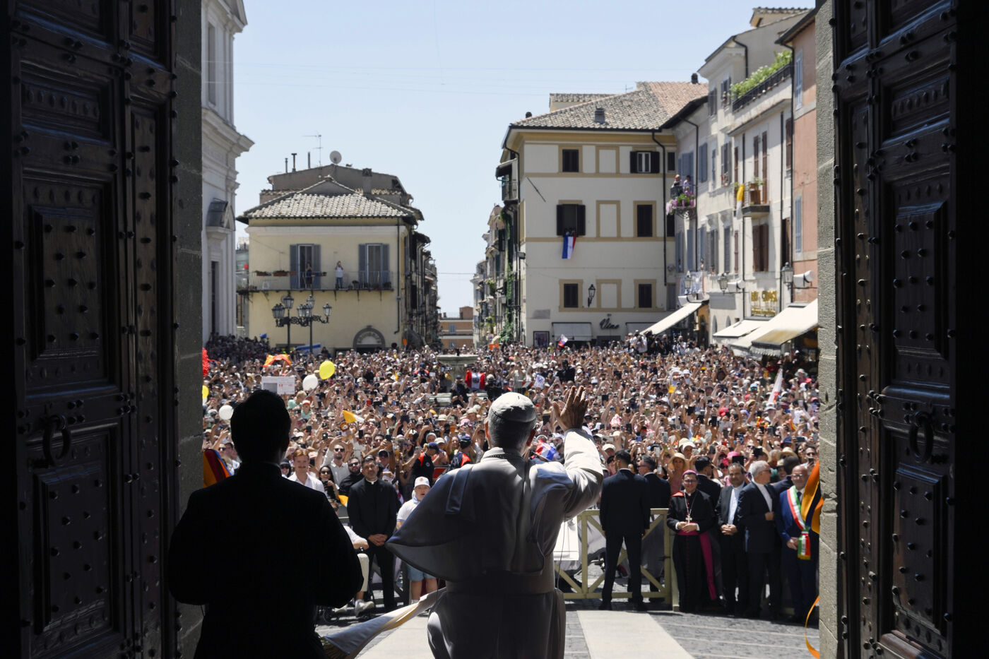 Pope Leo XIV leading the Angelus prayer in Castel Gandolfo