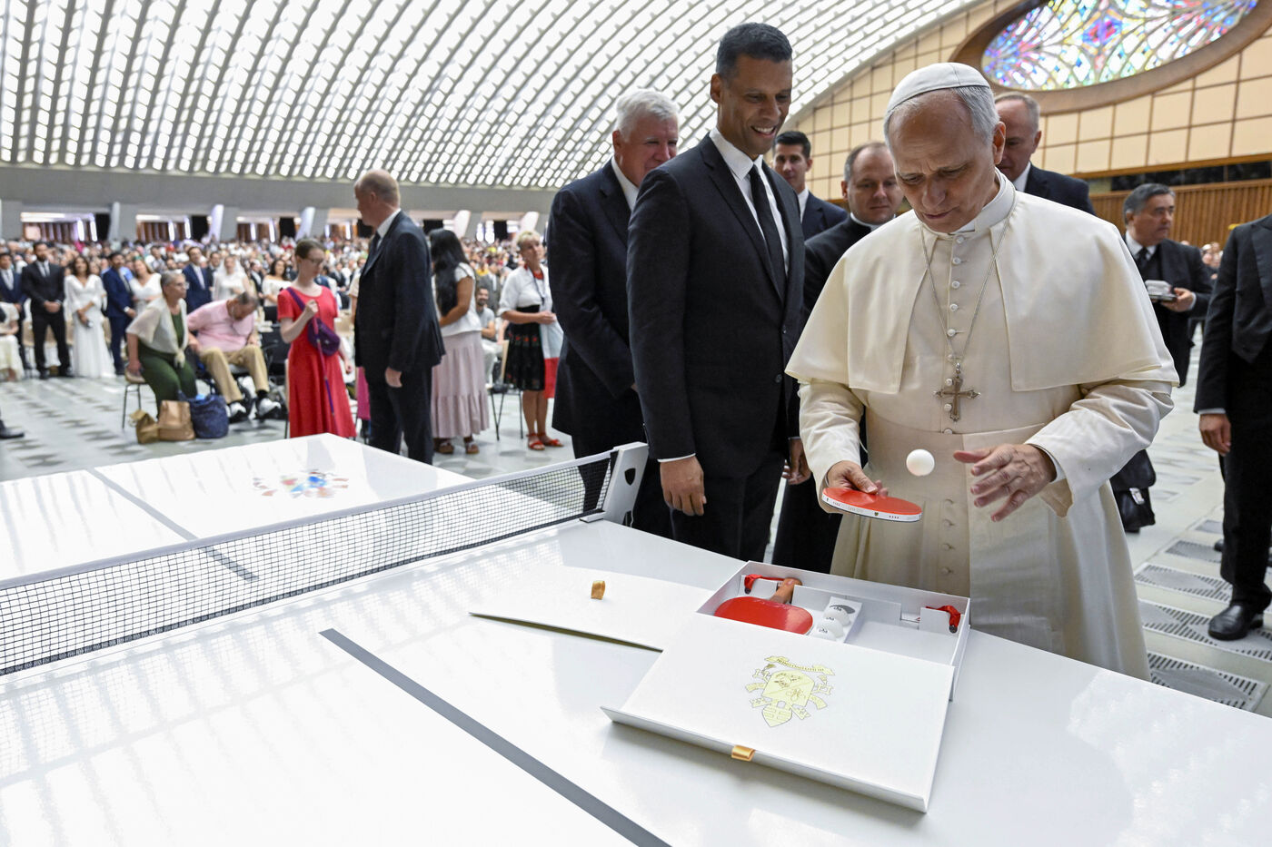 Pope Leo XIV leads his weekly audience at the Paul VI hall in the Vatican on 2025/8/20.