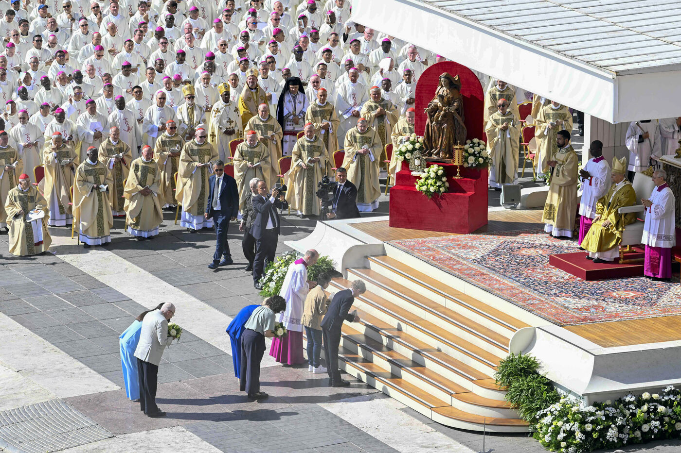 Célébration eucharistique présidée par le Saint-Père Léon XIV, rite de canonisation des bienheureux laïcs Pier Giorgio Frassati et Carlo Acutis sur la place Saint-Pierre au Vatican, le 7 septembre 2025.