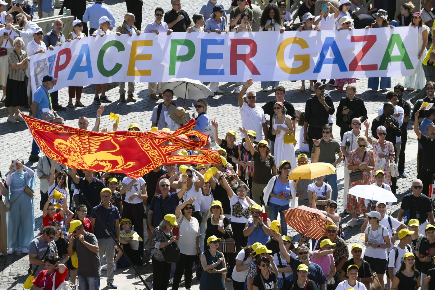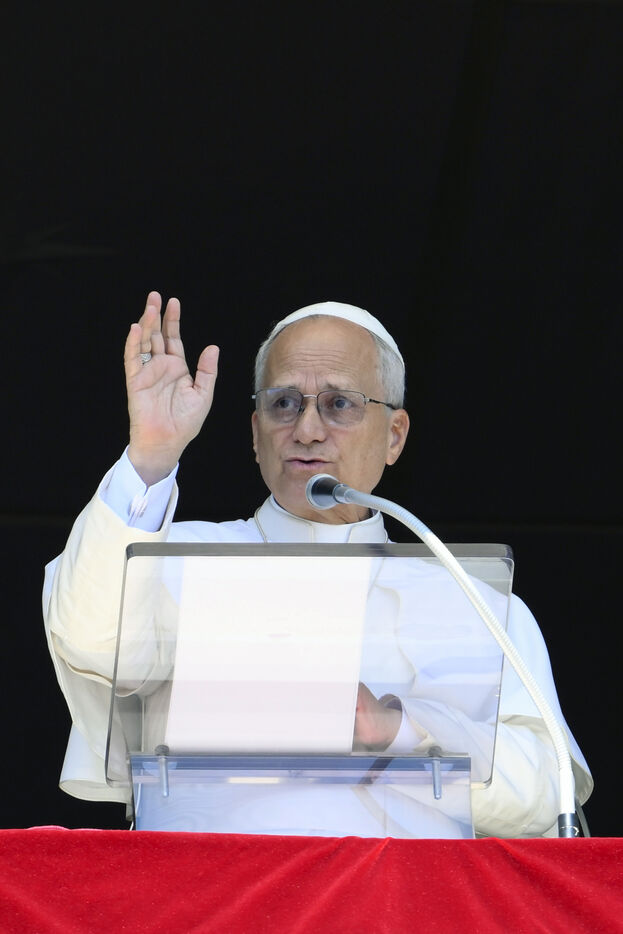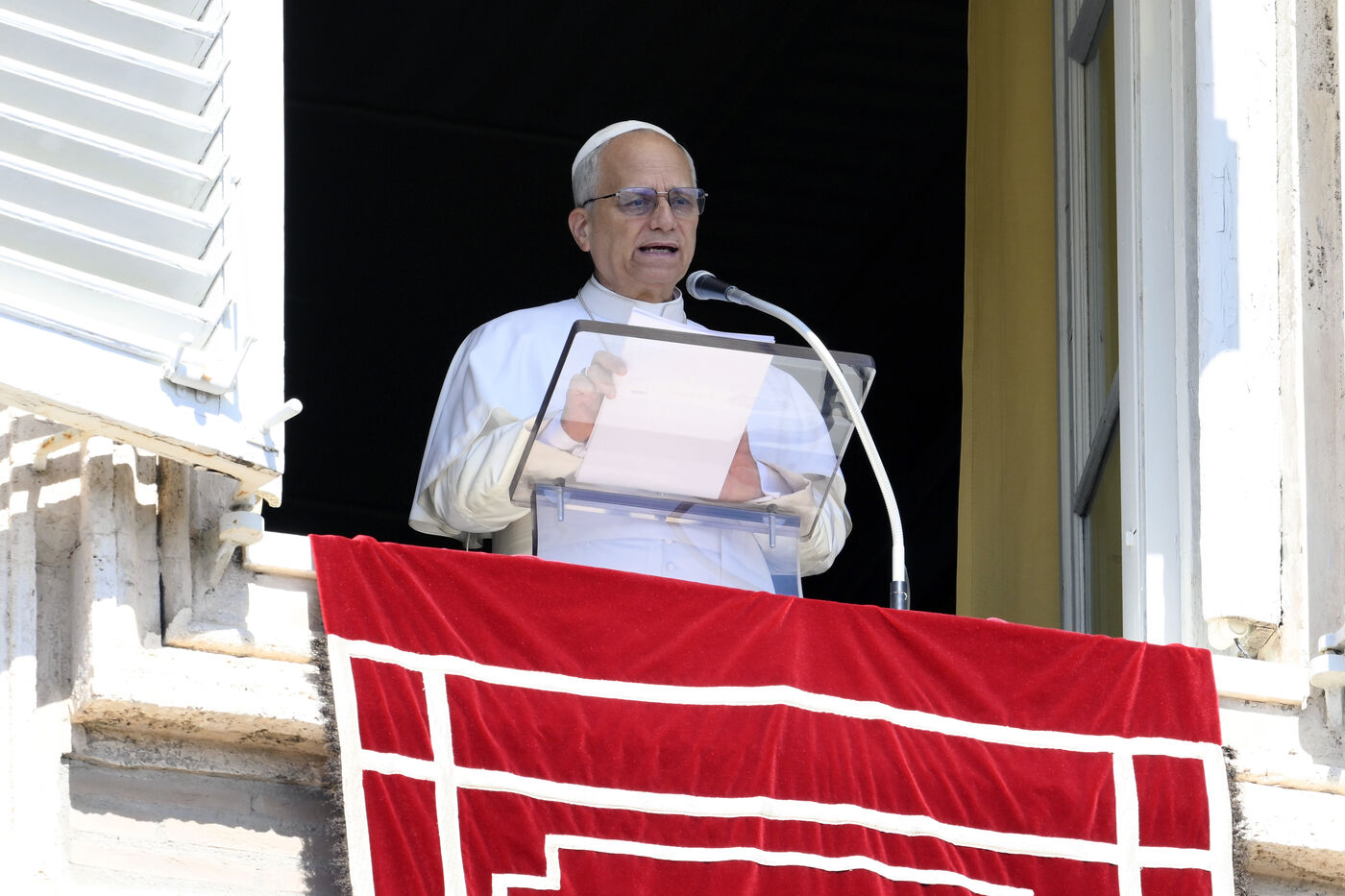 Le pape Léon XIV lors de l'Angélus sur la place Saint-Pierre au Vatican, le 21 septembre 2025. Photographie de VATICAN MEDIA / CPP / HANS LUCAS.