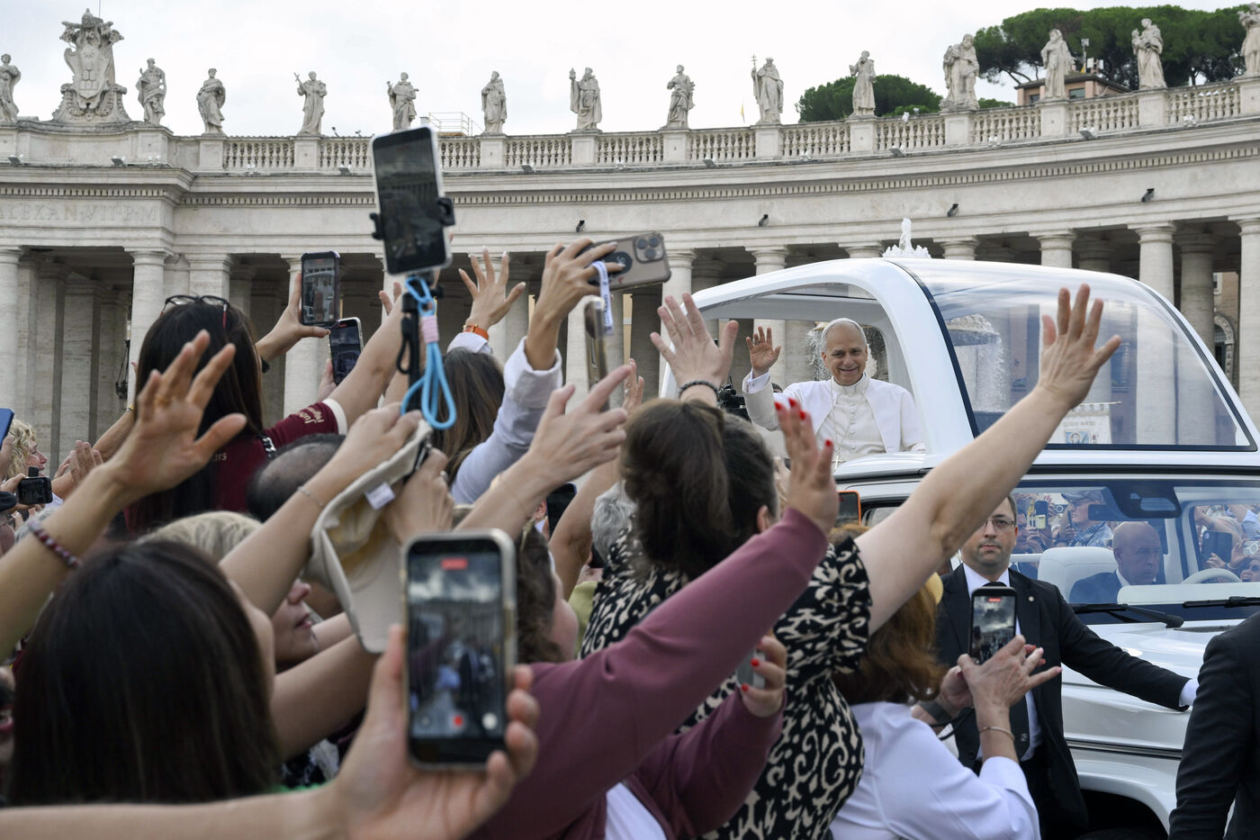 Le pape Léon XIV s'adresse à la foule lors de l'audience générale hebdomadaire place Saint-Pierre au Vatican, le 24 septembre 2024.