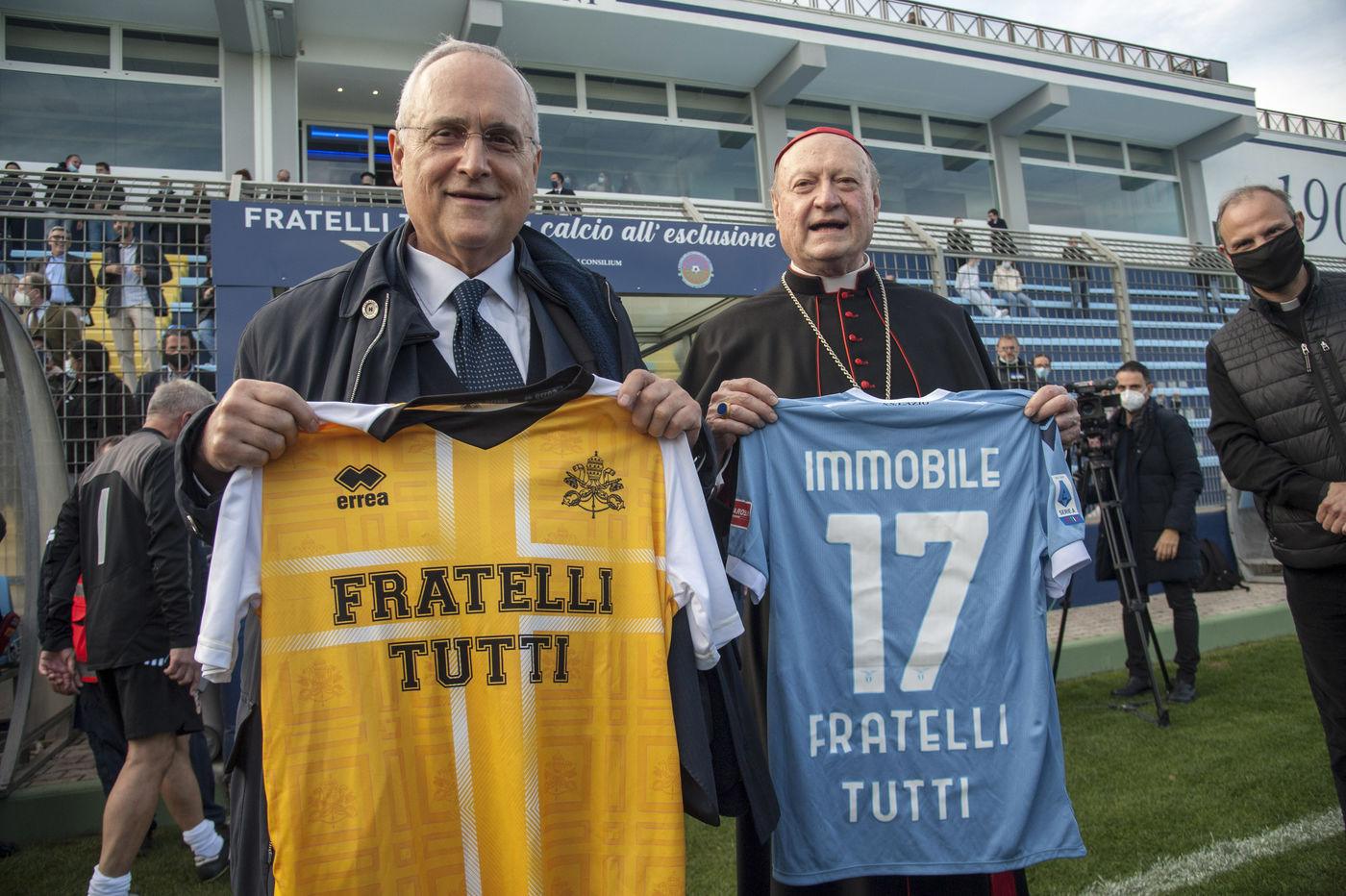Italy, Rome, 21/11/21. Friendly football match "Fratelli tutti", between the World Rom Organization and the "Team of the Pope - Fratelli tutti", at the Training Center of the Sporting Club Lazio, in Formello (ROME).