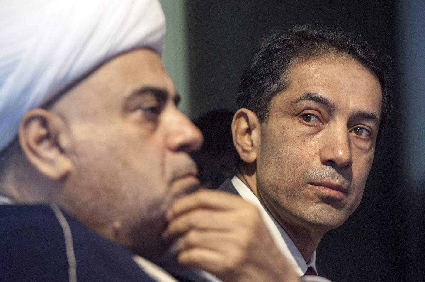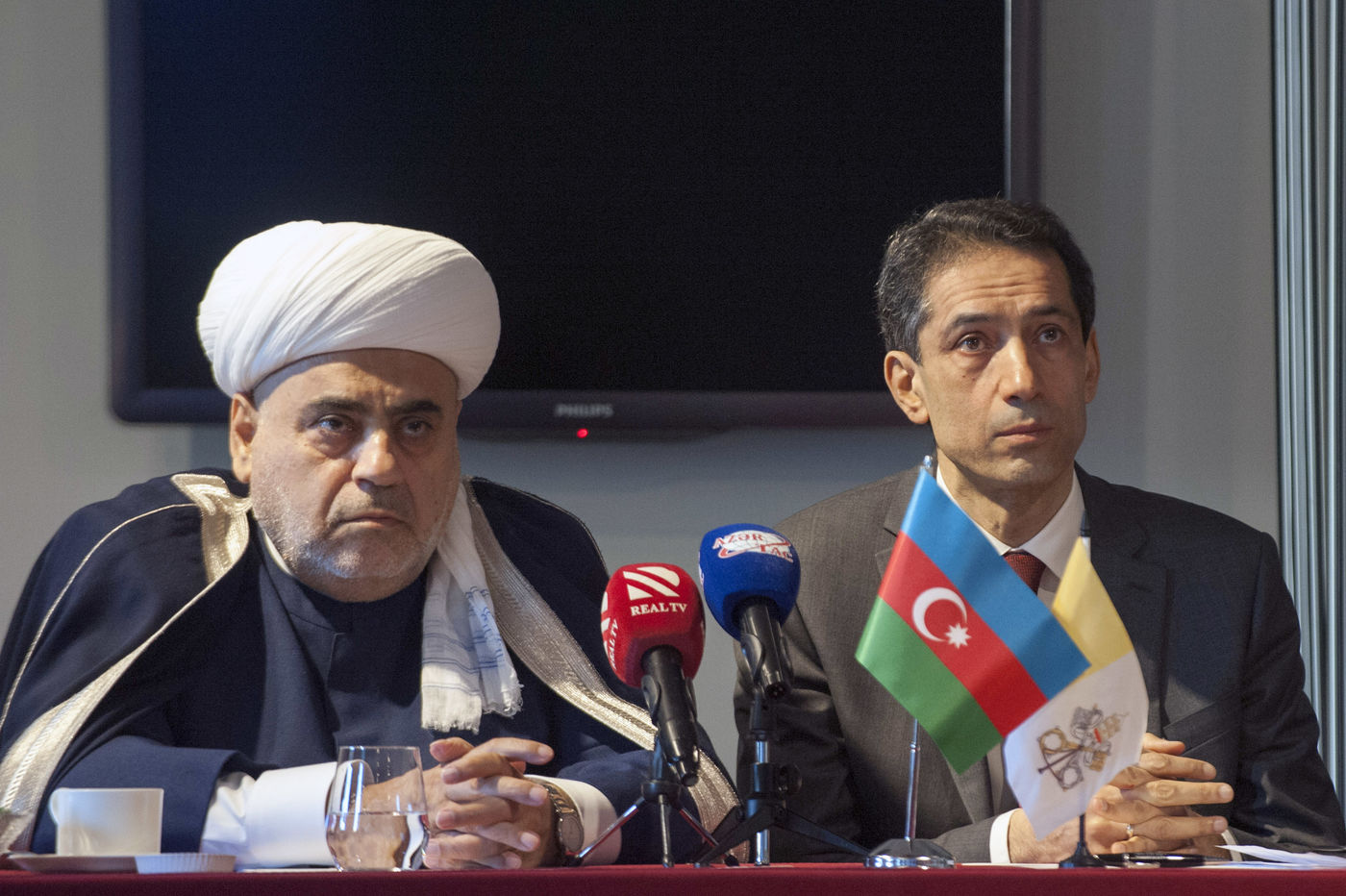 Italy, Rome, Vatican, 22/01/17. Sheikh ul-Islam Allahchukur Pashazadé, Head of the Caucasus Muslim Directorate and Rahman Sahib oglu Mustafayev, Ambassador of Azerbaijan to the Holy See during press conference on the occasion of the official visit to the Holy See of the inter-religious delegation of the Republic of Azerbaijan, at the Hotel Agrippina.