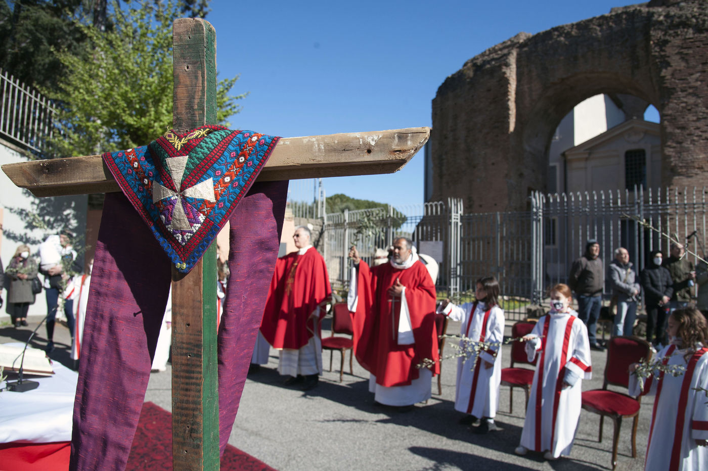 Italy, Rome, 22/04/10. Celebration of Palm Sunday Mass at the Church of Saints Marcellin and Peter ad Duas Lauros and the Mausoleum of St. Helen in the Roman outskirts of Via Casilina.