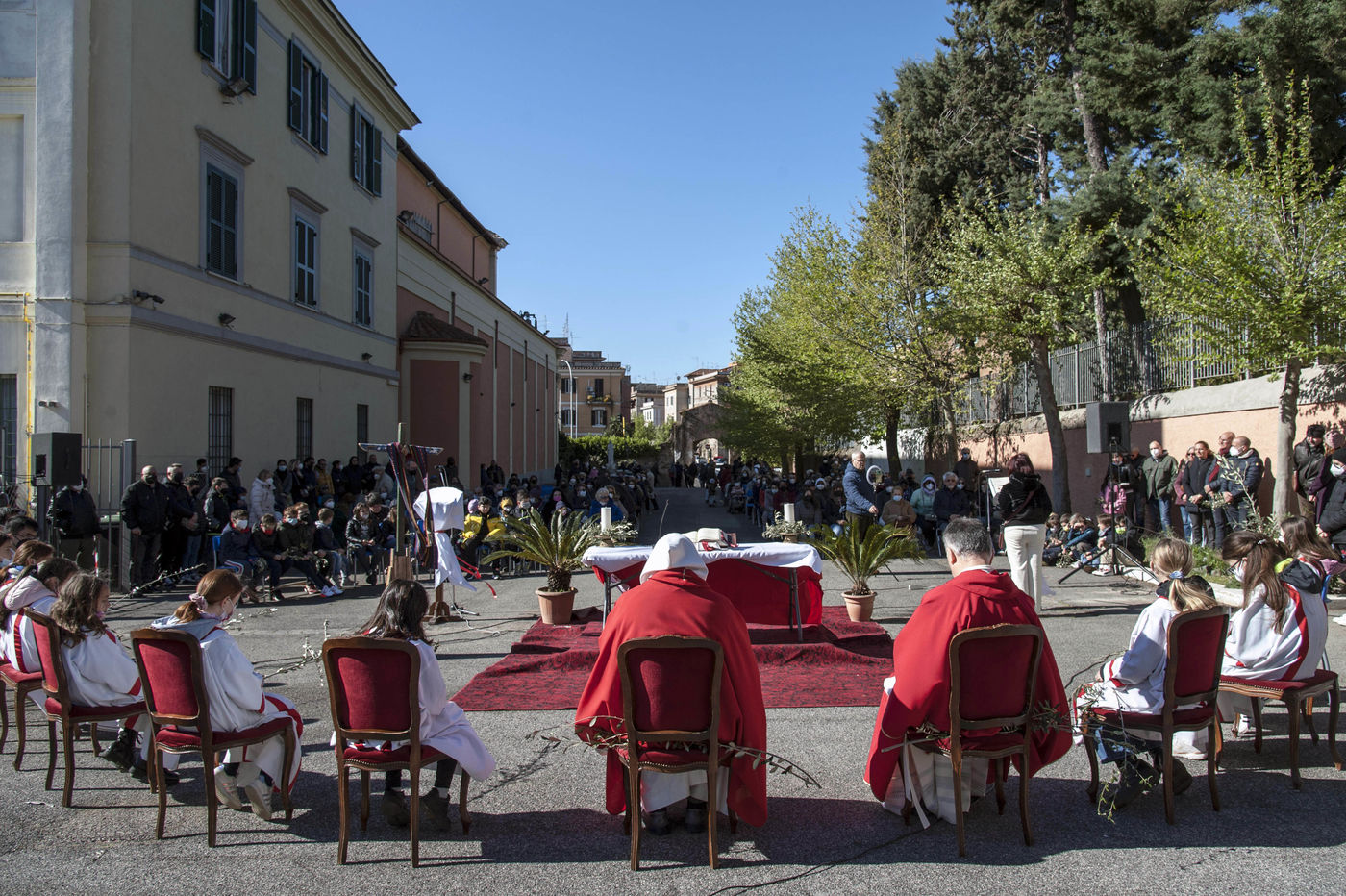 Celebration of Palm Sunday Mass at the Church of Saints Marcellin and Peter ad Duas Lauros