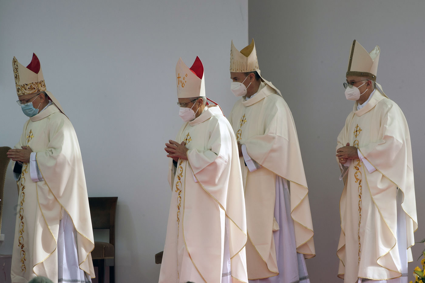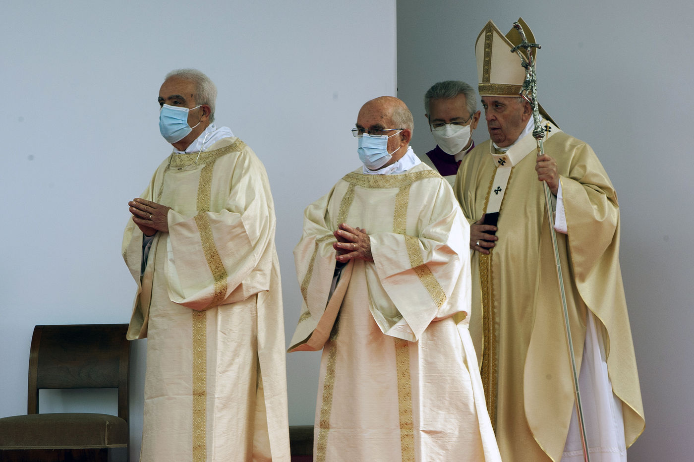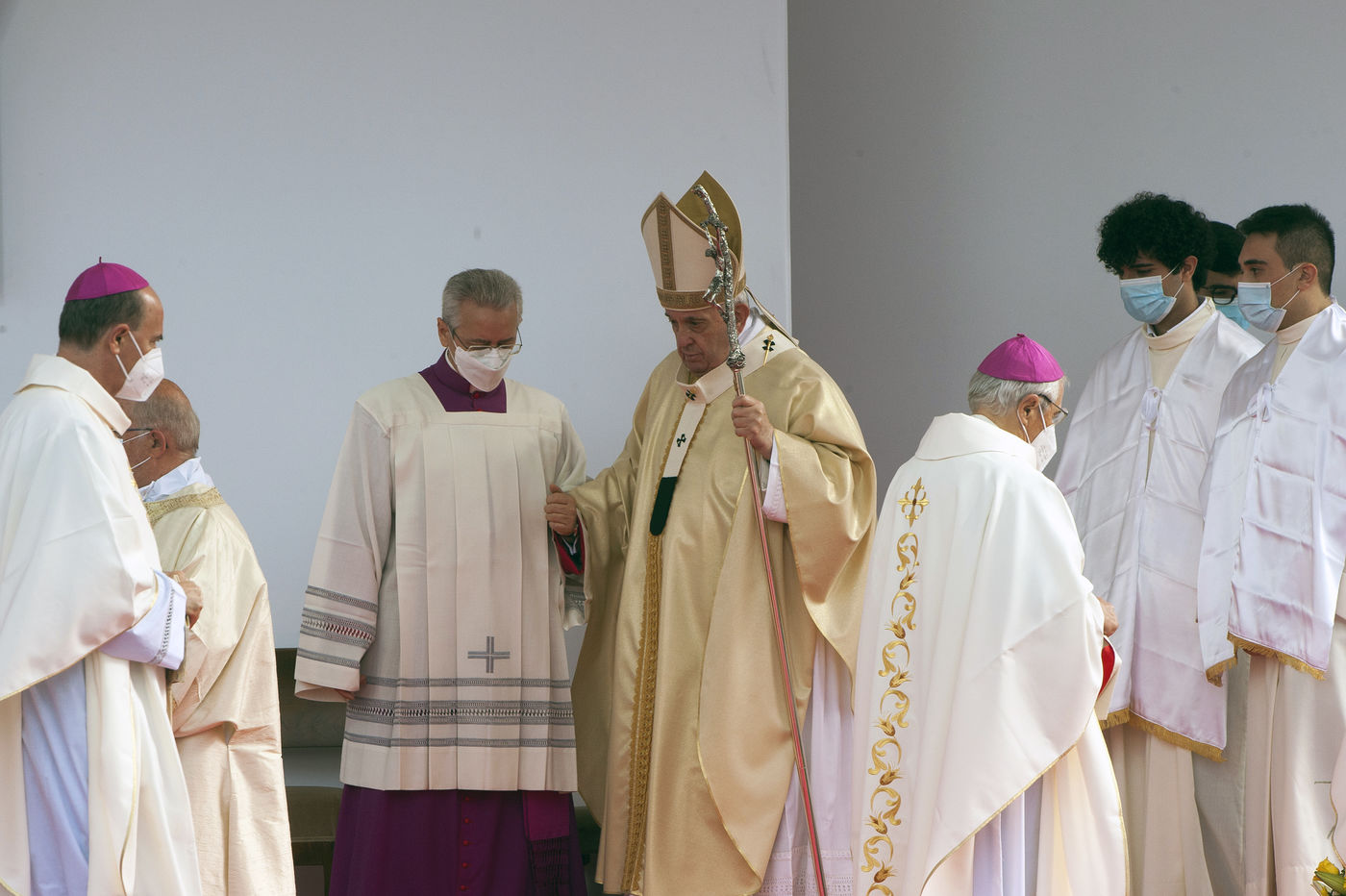 Italy, Rome, Vatican, 2021/11/5. Pope Francis celebrates a mass at Rome's Catholic University Of The Sacred Heart to help mark the 60th anniversary of its establishment, in Rome.