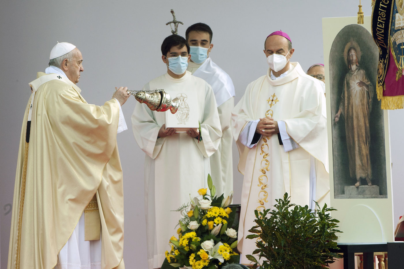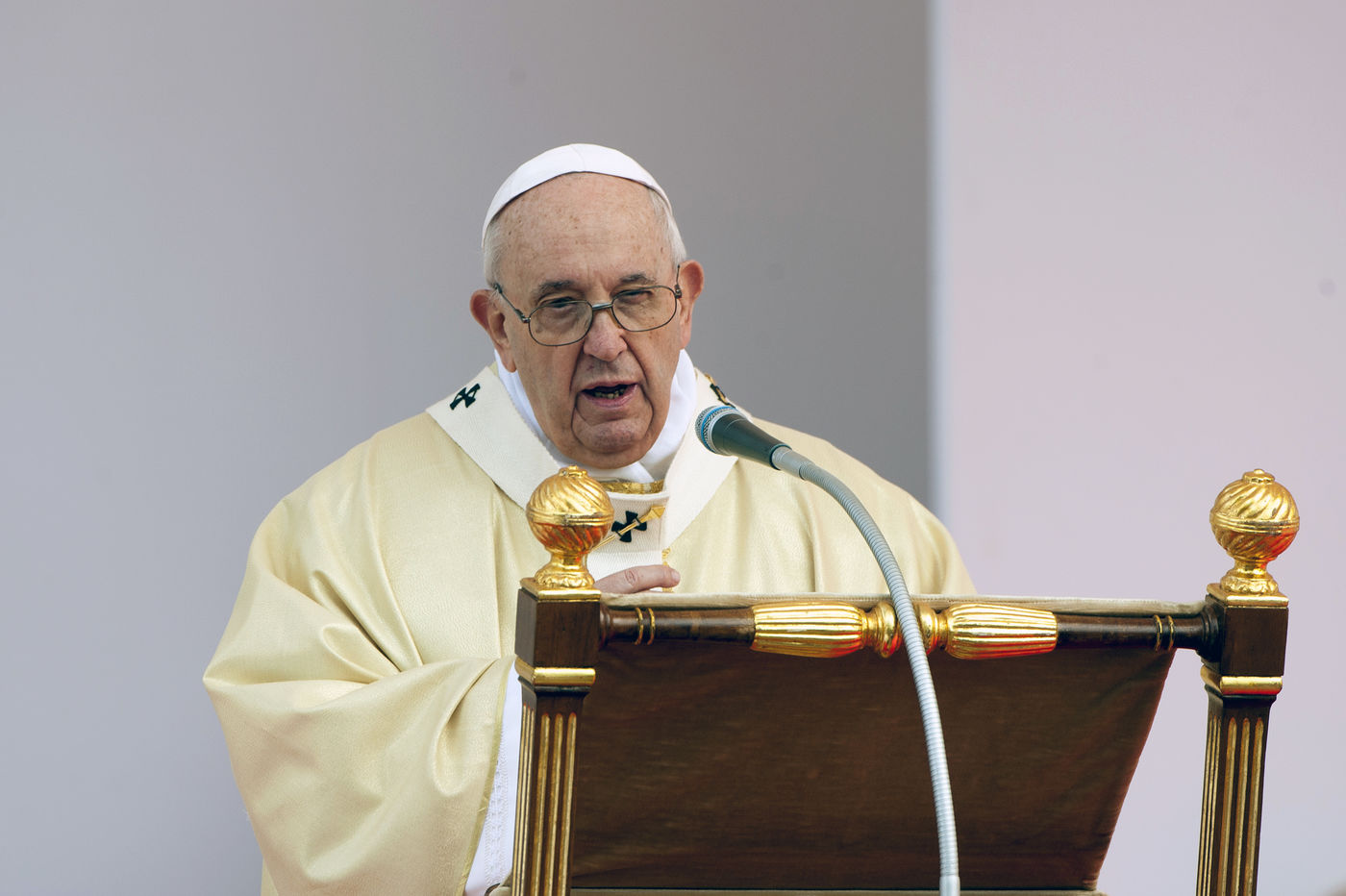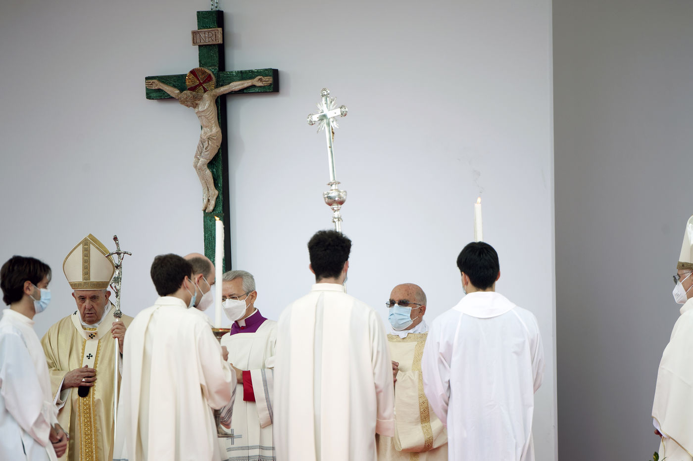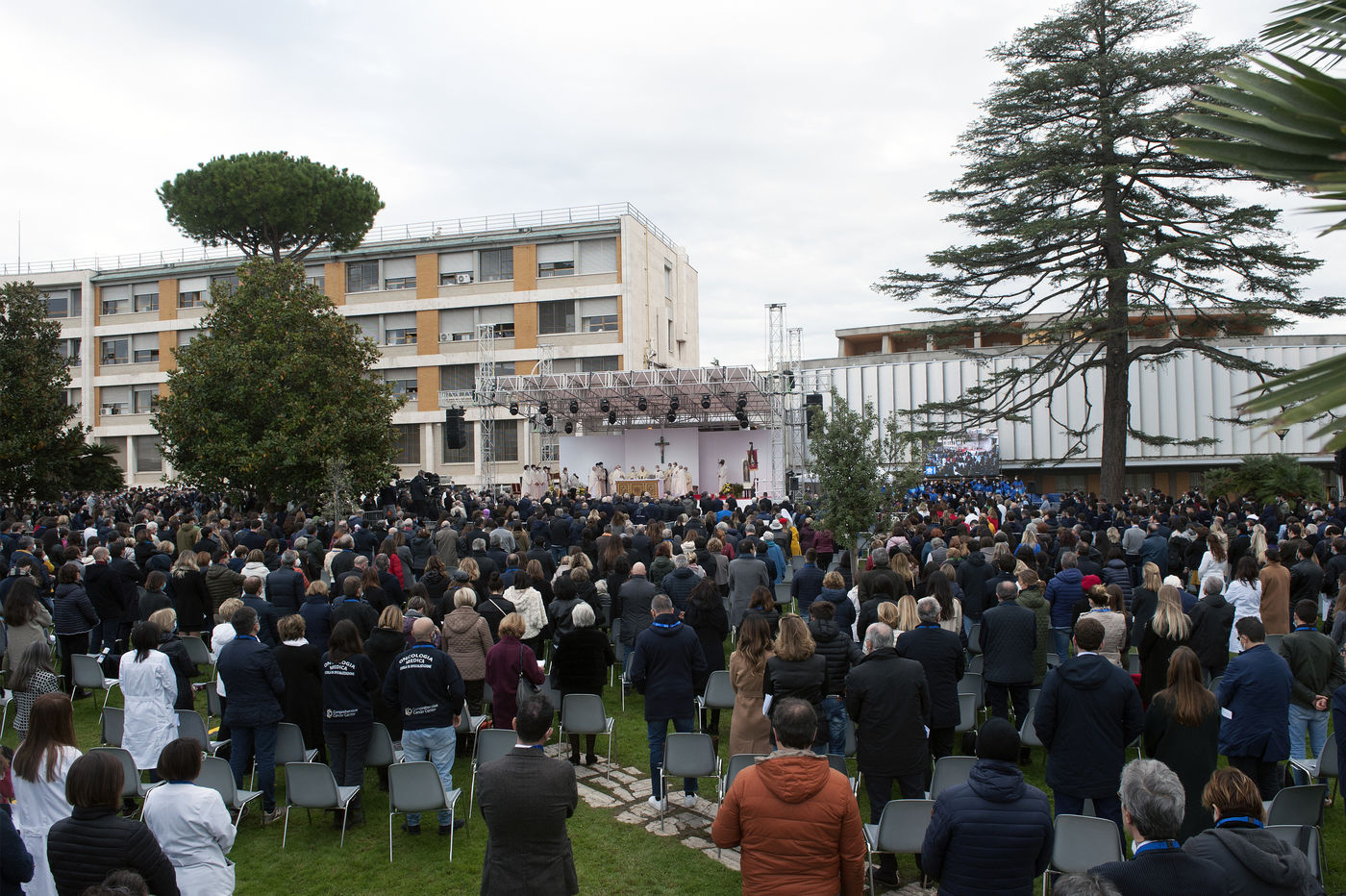 Pope Francis celebrates a mass at Rome's Catholic University Of The Sacred Heart
