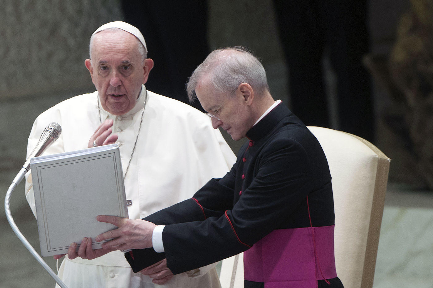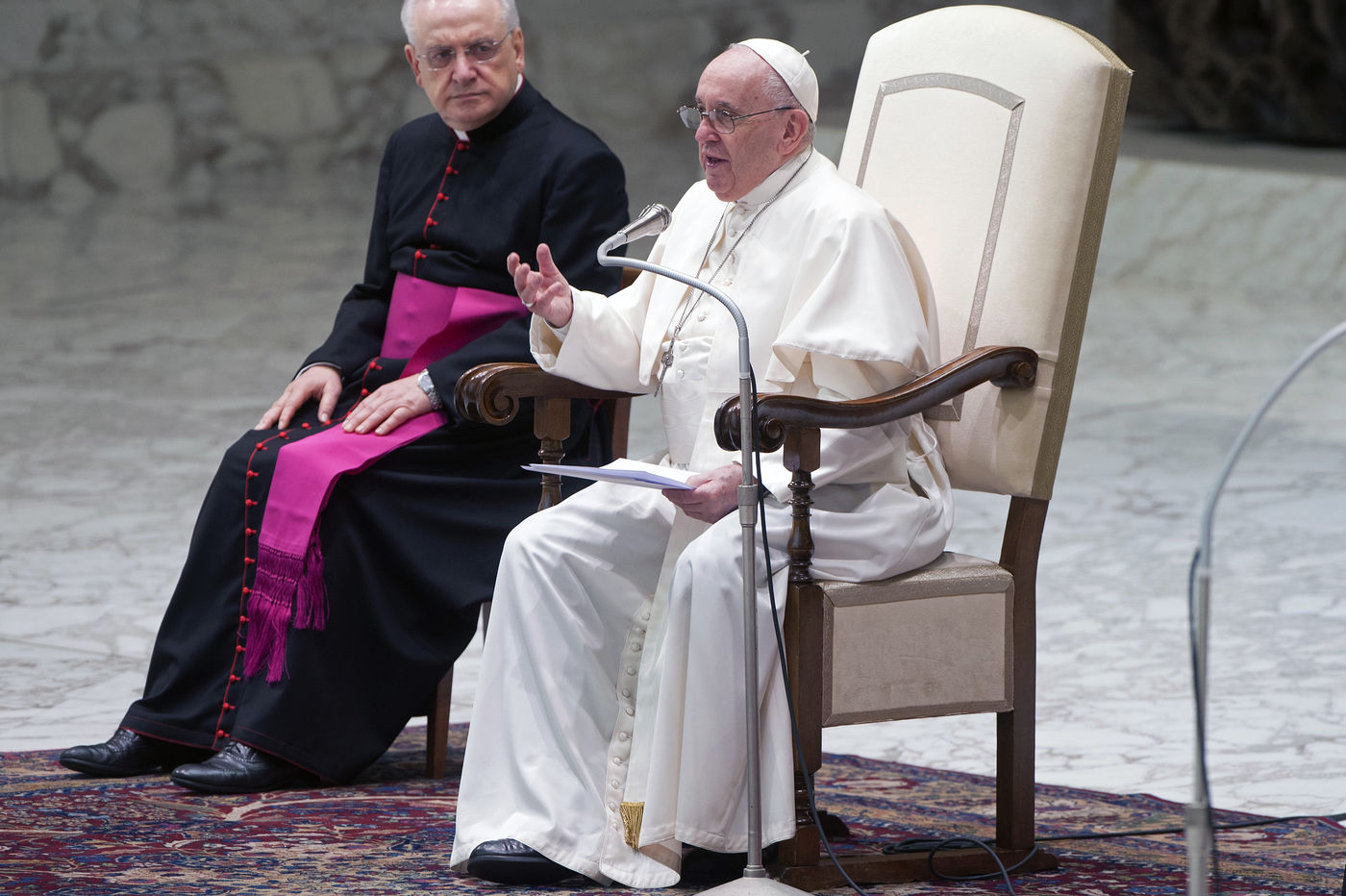 Le Pape François pendant son audience générale hebdomadaire