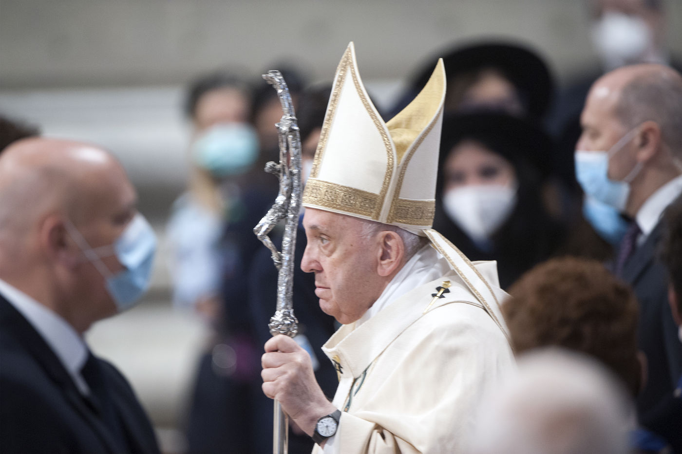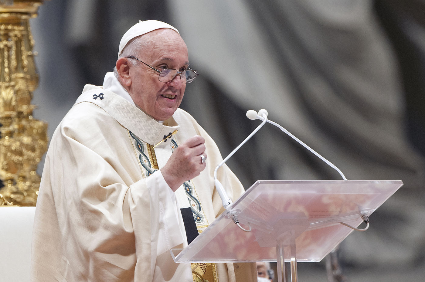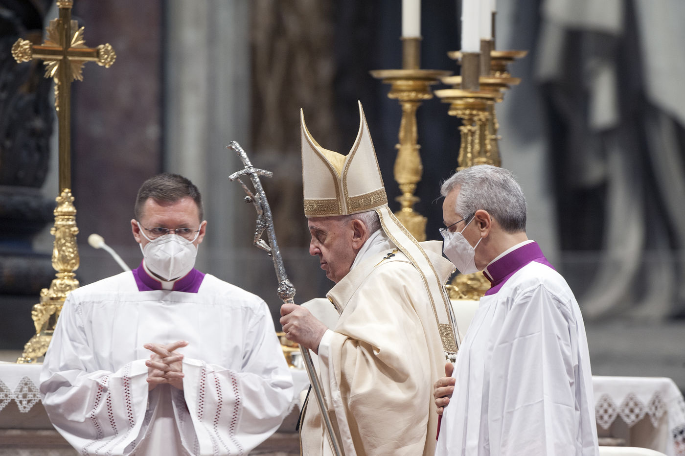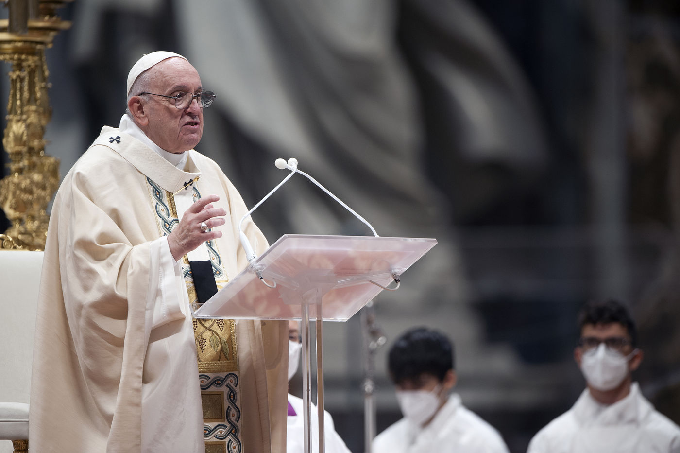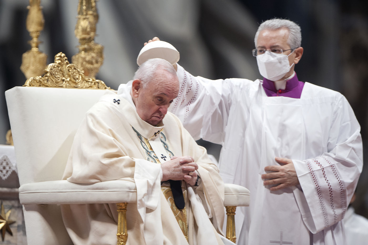 Italy, Rome, Vatican, 2021/11/21. Pope Francis celebrates Holy Mass on the Solemnity of Our Lord Jesus Christ King of the Universe XXXVI World Youth Day in the Vatican Basilica.