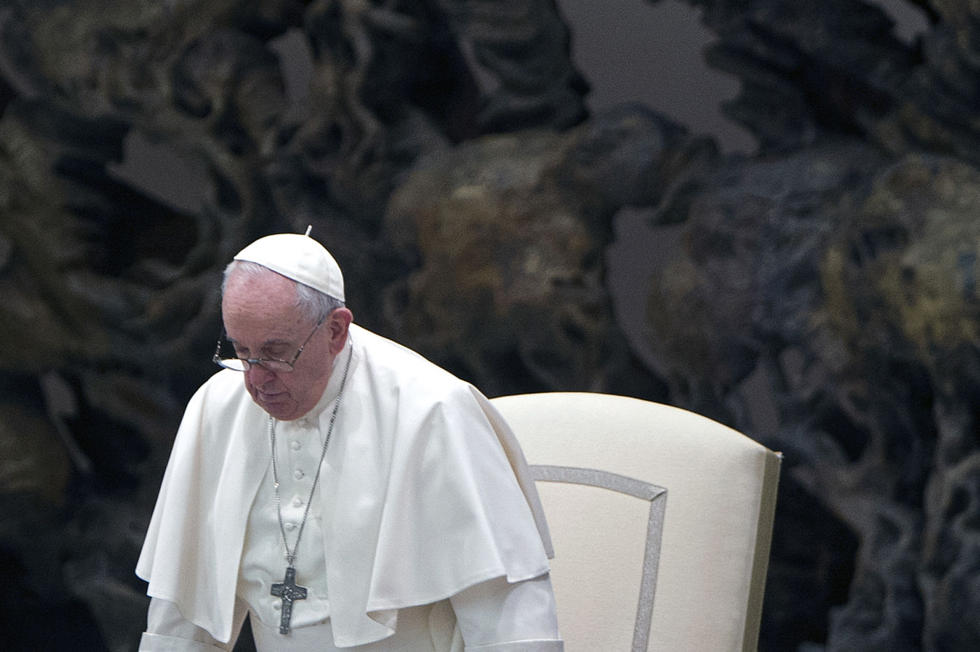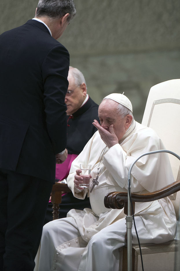 Italie, Rome, Vatican, 2022/02/23. Le pape François pendant l'audience générale hebdomadaire dans la salle Paul VI au Vatican.