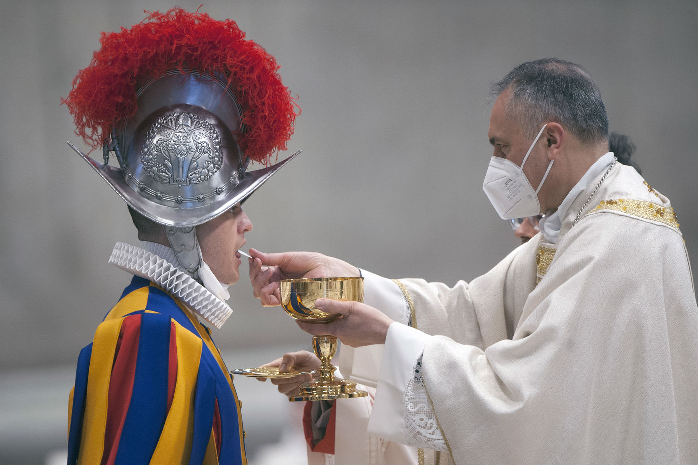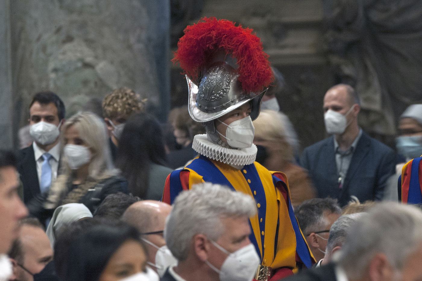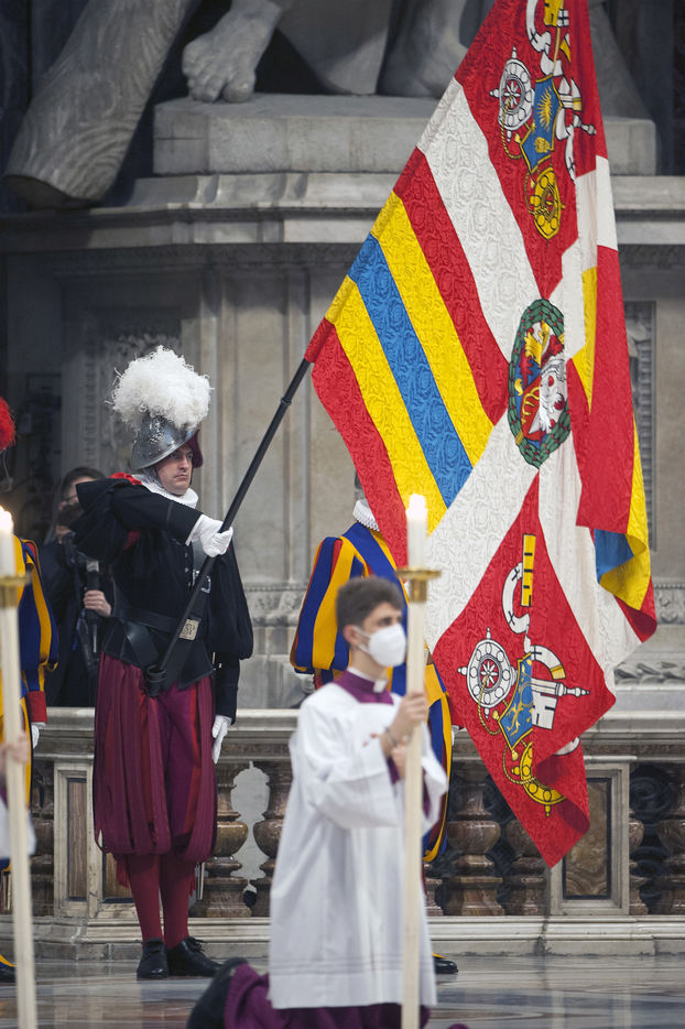 Italy, Rome, Vatican, 2022/05/06. S. Em. Card. Mauro Gambetti, Archpriest of the Papal Basilica of St. Peter's celebrates the mass on the occasion of the jubilee of the Swiss Guards in the Vatican.