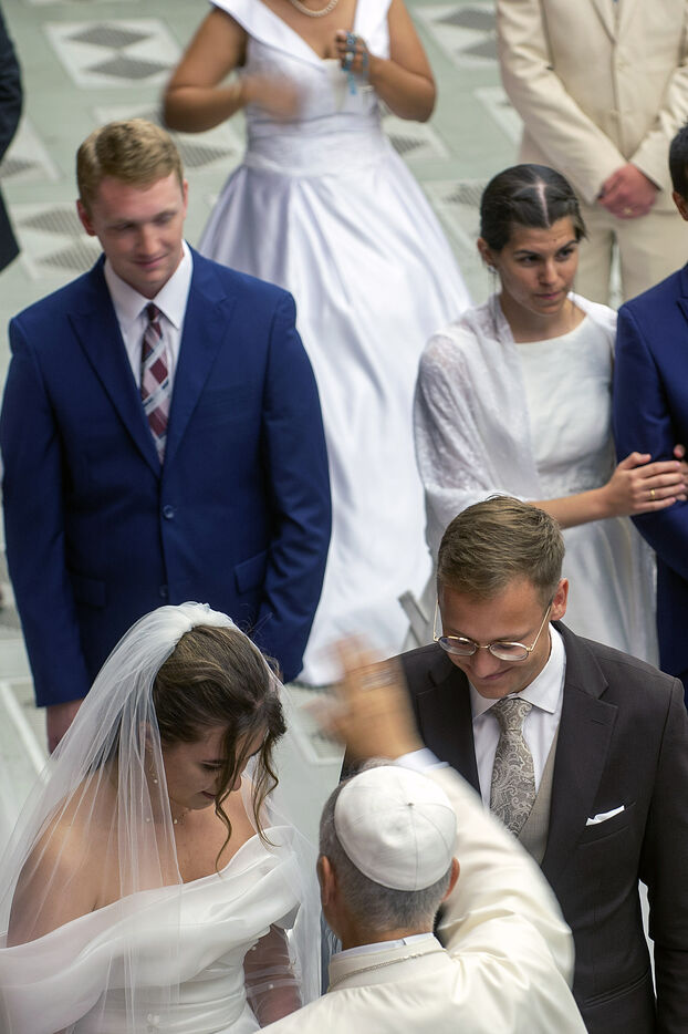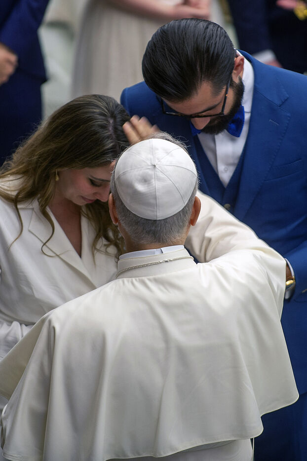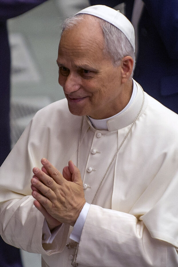Pope Leo XIV during the general audience in St Peter's Basilica at the Vatican on 2025/8/ 13. Pope Leo XIV's General Audience is held in the Paul VI Hall due to the extreme Roman heat at the Vatican.