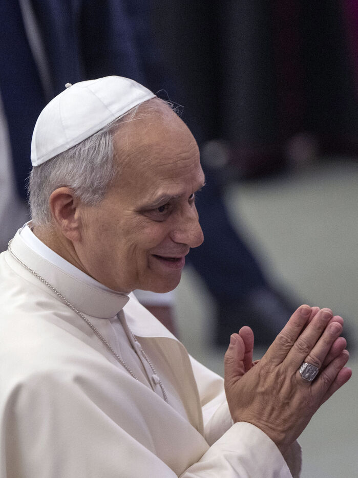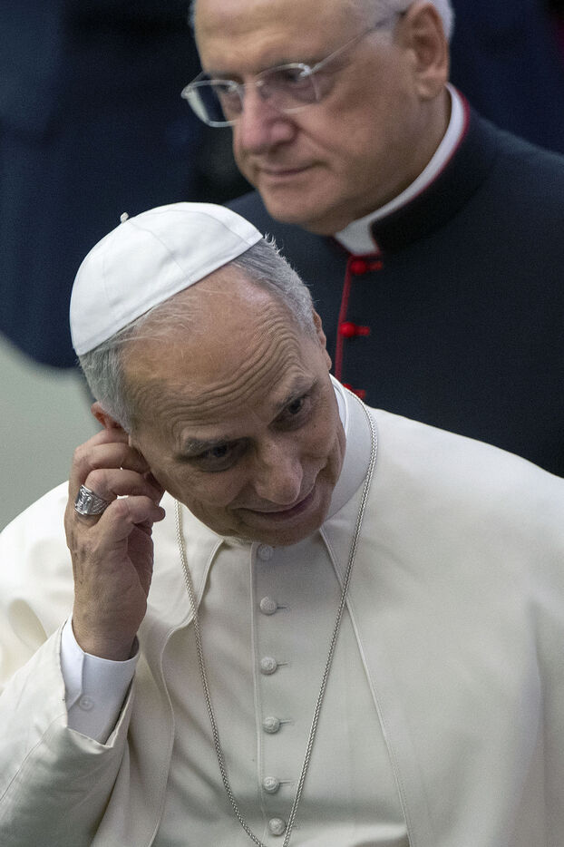 Le pape Léon XIV lors de l'audience générale dans la salle Paul VI au Vatican le 2025/8/27.
