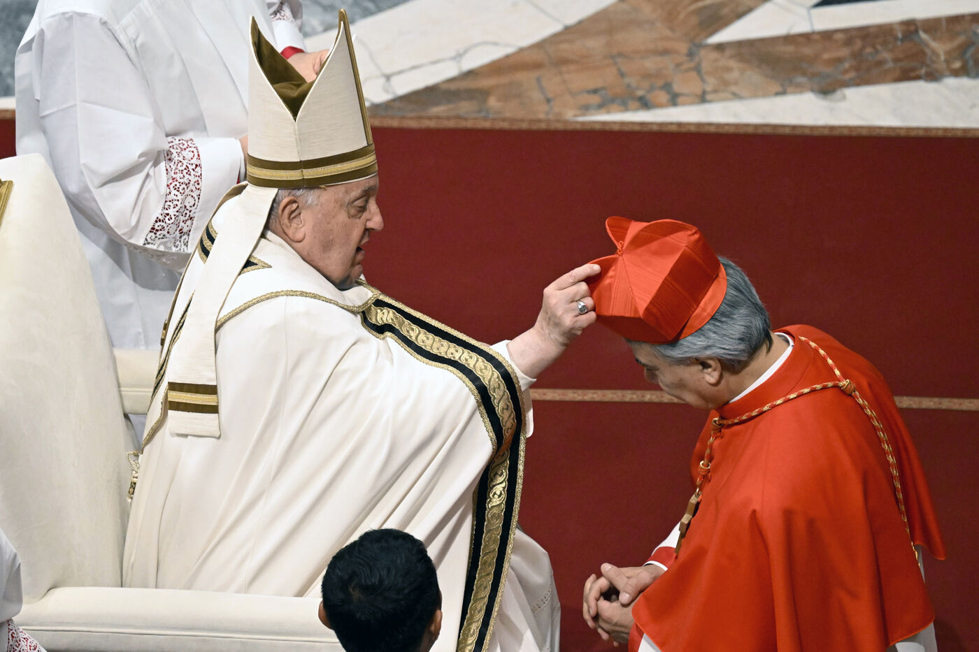 Consistoire pour la Création de Nouveaux Cardinaux et messe d'action de grâce en présence du Pape Francis et les nouveaux cardinaux dans la basilique Saint-Pierre au Vatican, 07-12-2024.