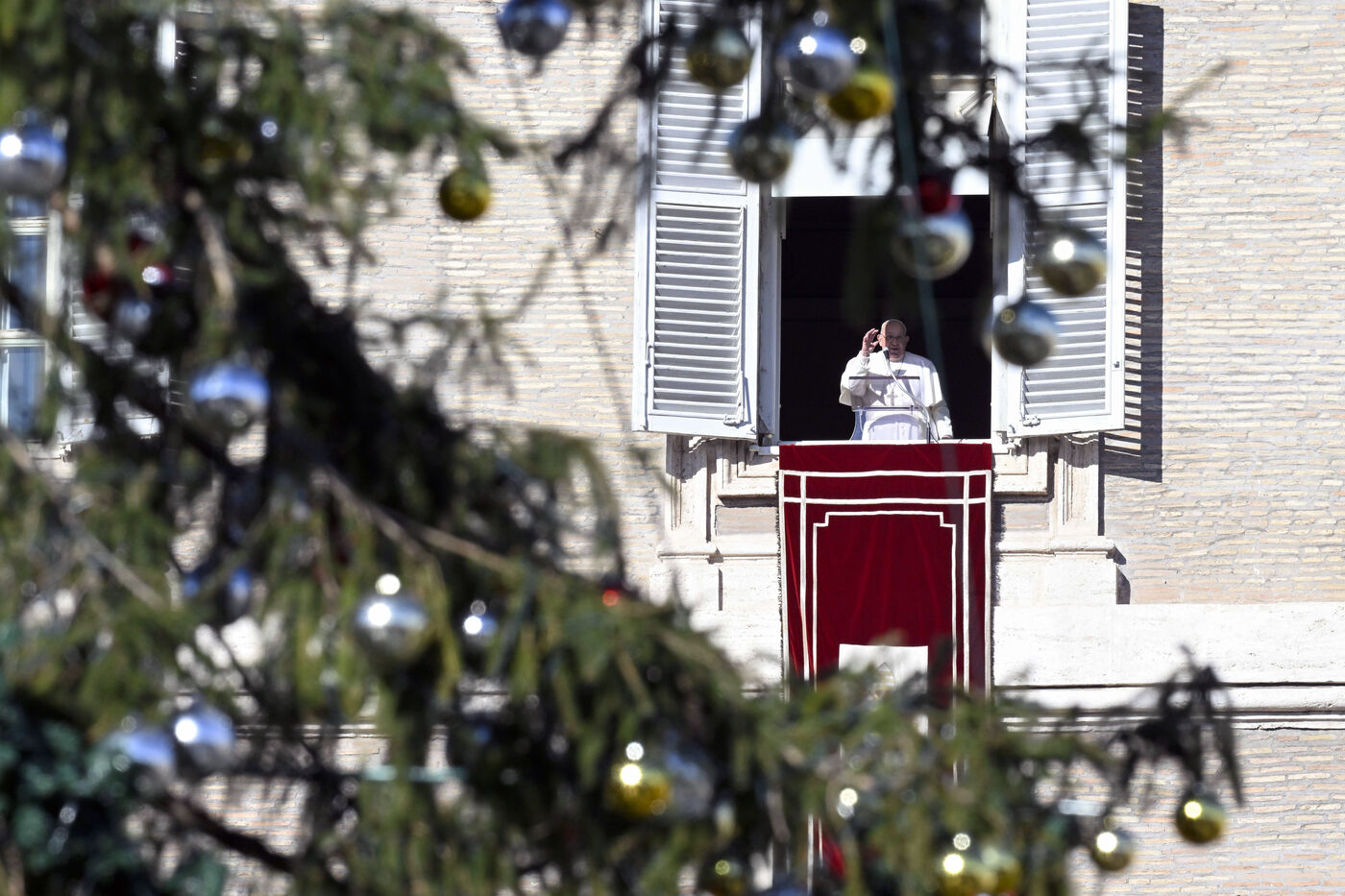 Pope Francis delivers his blessing to the faithful during the Angelus prayer at St Peter's square in the Vatican, 2024/12/26.