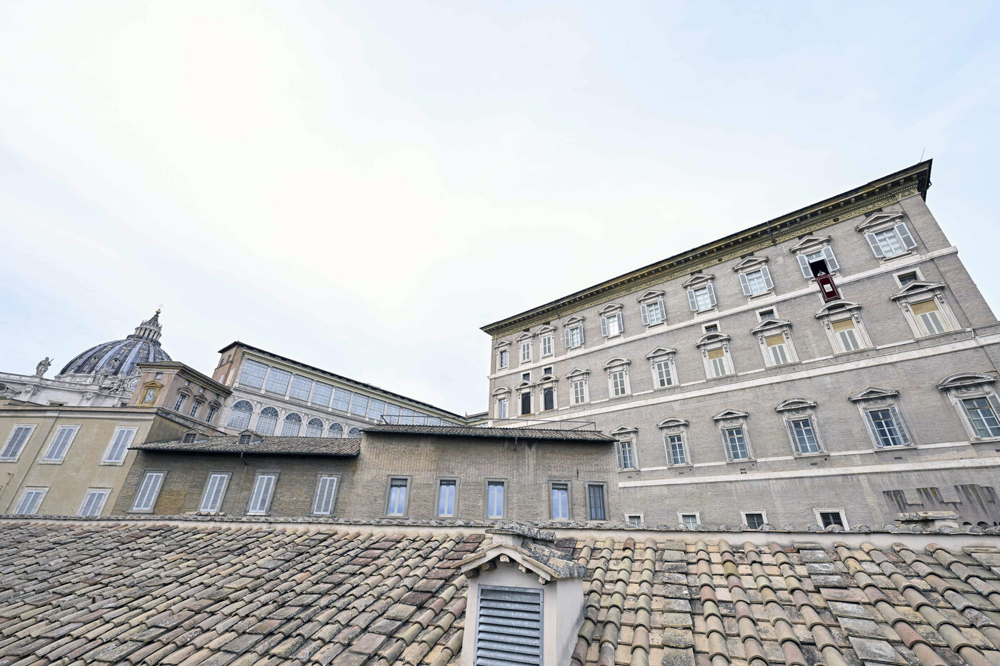 Le pape Francois donne sa benediction aux fideles pendant la priere de l'Angelus sur la place Saint-Pierre au Vatican, 2025/1/12.
