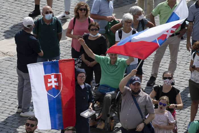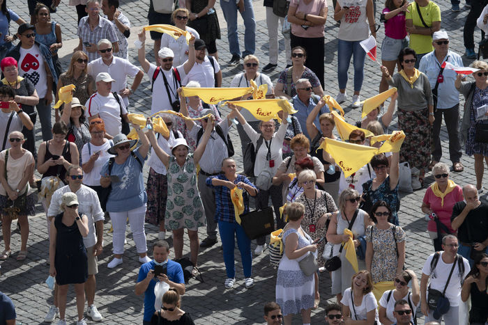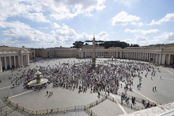 Italy, Rome, Vatican, 21/09/19. Faithful attend the Angelus noon prayer in Saint Peter's Square in the Vatican.