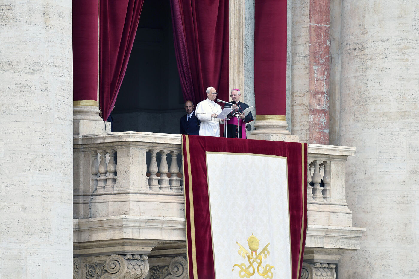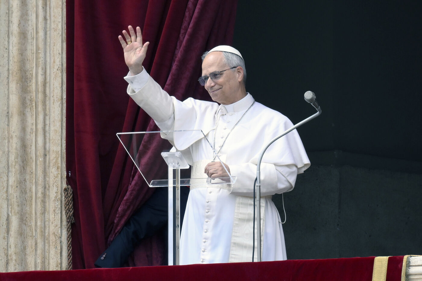 Vatican, 2025/5/11. Le pape Léon XIV pendant sa première prière du Reginal Caeli depuis la loggia centrale de la basilique Saint-Pierre au Vatican.