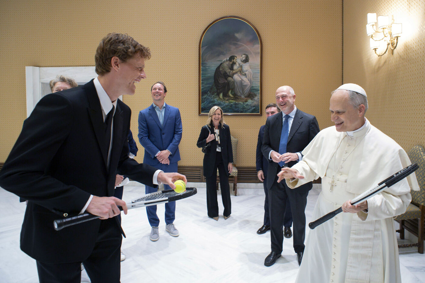 Vatican, 2025/5/14. Le pape Léon XIV reçoit en audience privée l'audition de Jannik Sinner au Vatican.