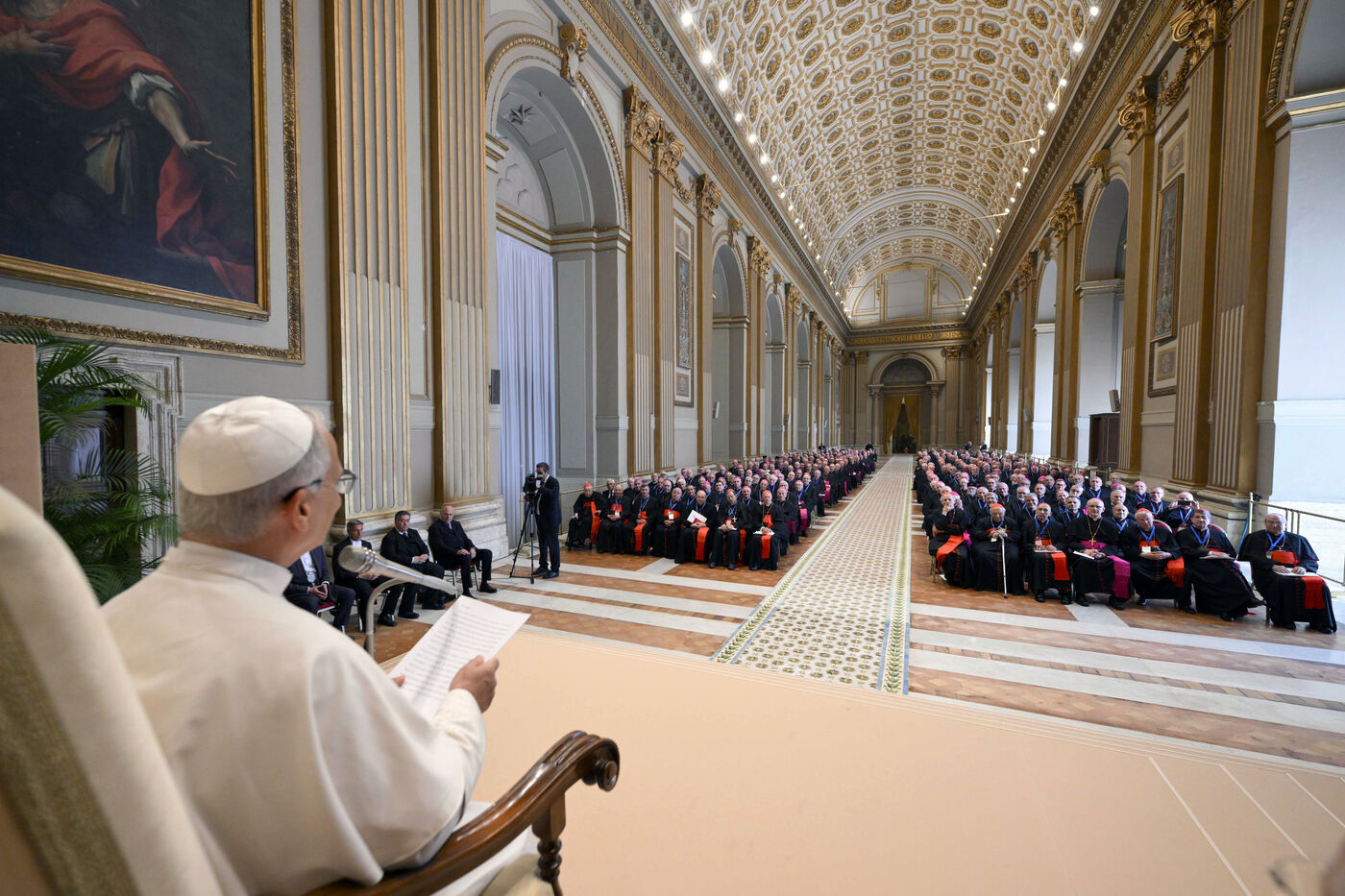Le pape Léon XIV lors d'une audience avec les évêques italiens