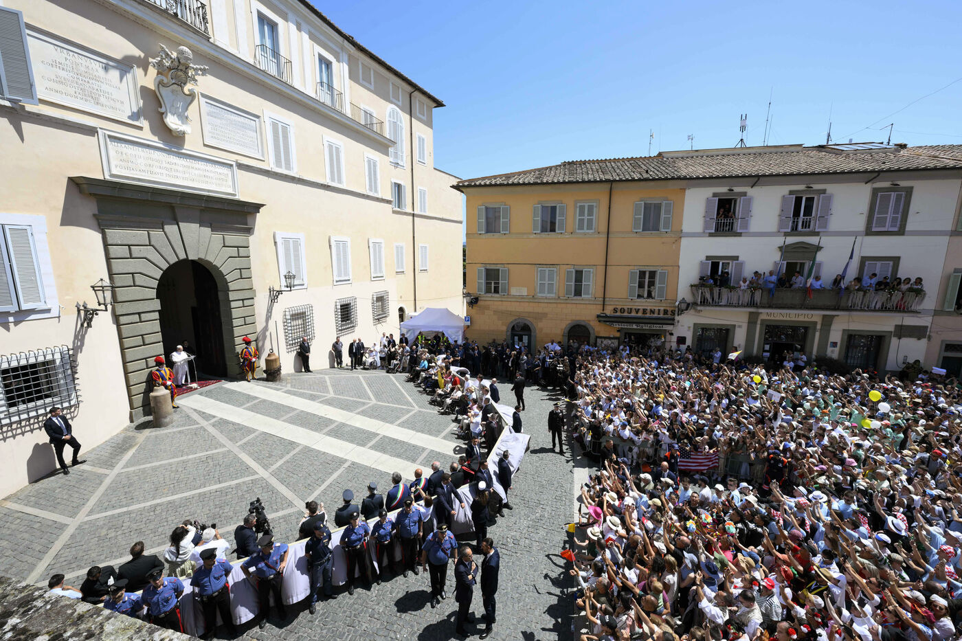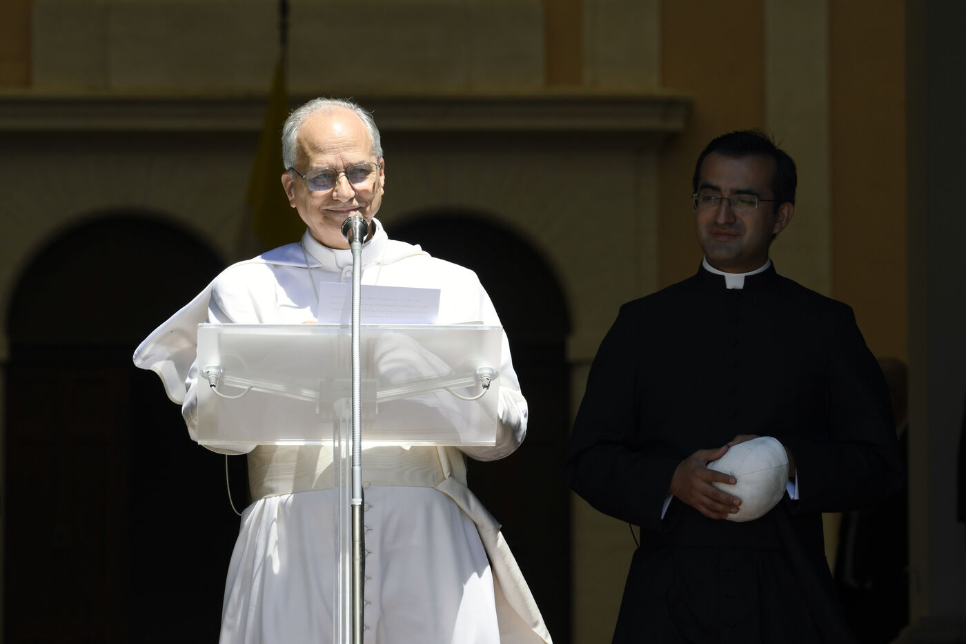 Pope Leo XIV leading the Angelus prayer in Castel Gandolfo