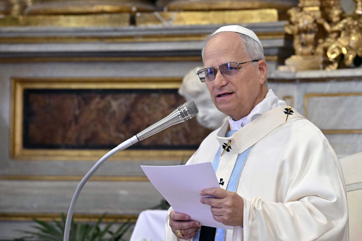 Pope Leo XIV at the St. Thomas of Villanova Church to celebrate a mass in Castel Gandolfo on the outskirts of Rome in Italy on 2025/8/15.