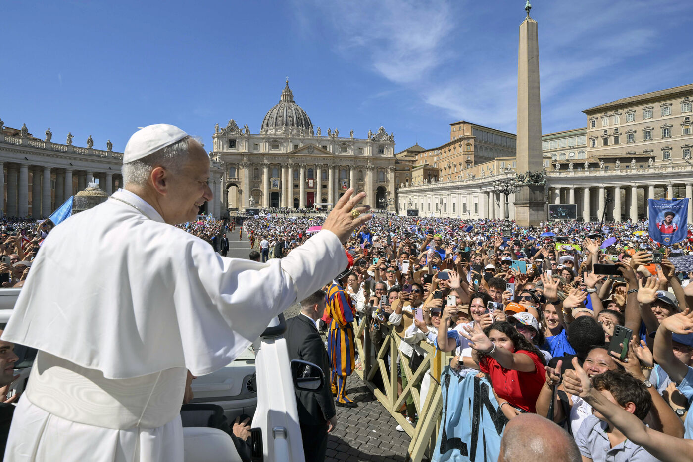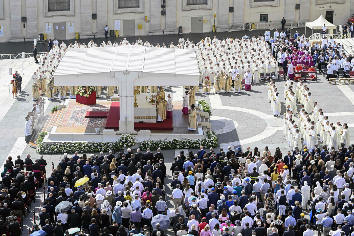 Eucharistic Celebration presided over by the Holy Father Pope Leo XIV, rite of canonization of the Blessed Laymen Pier Giorgio Frassati and Carlo Acutis in St. Peter's Square in Vatican on September 7, 2025.